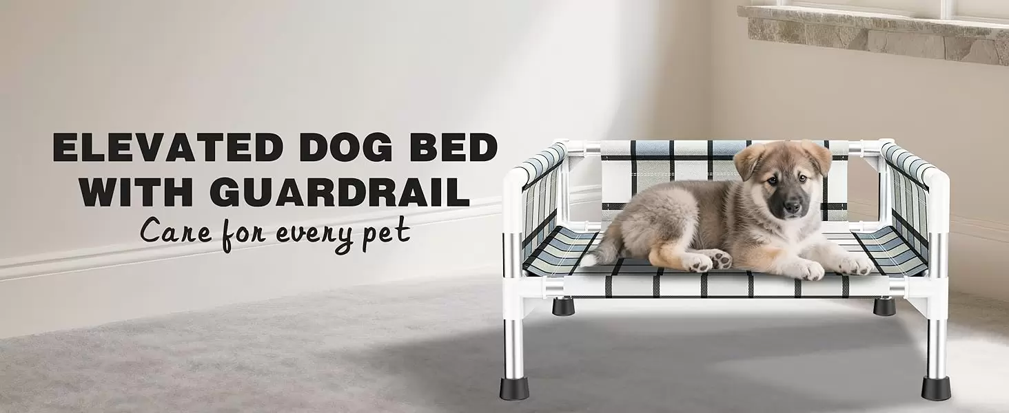 Cama Elevada (Cuna) para Perros | Anti-Calor y Anti-Humedad | Diseño Fresco con Barandilla