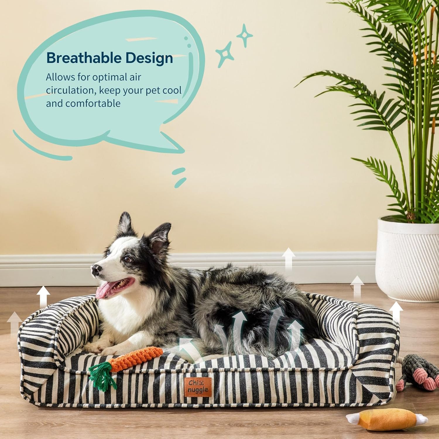 Ideal para perros medianos a grandes: esta cama para perros es perfecta para perros de tamaño mediano a grande, ofreciendo un lugar de descanso cómodo y duradero. Está diseñado para adaptarse al tamaño y el peso de razas más grandes, por lo que es una opción ideal para camas para perros de gran tamaño y camas para perros de tamaño mediano, asegurando que las mascotas de todos los tamaños puedan encontrar comodidad y apoyo.