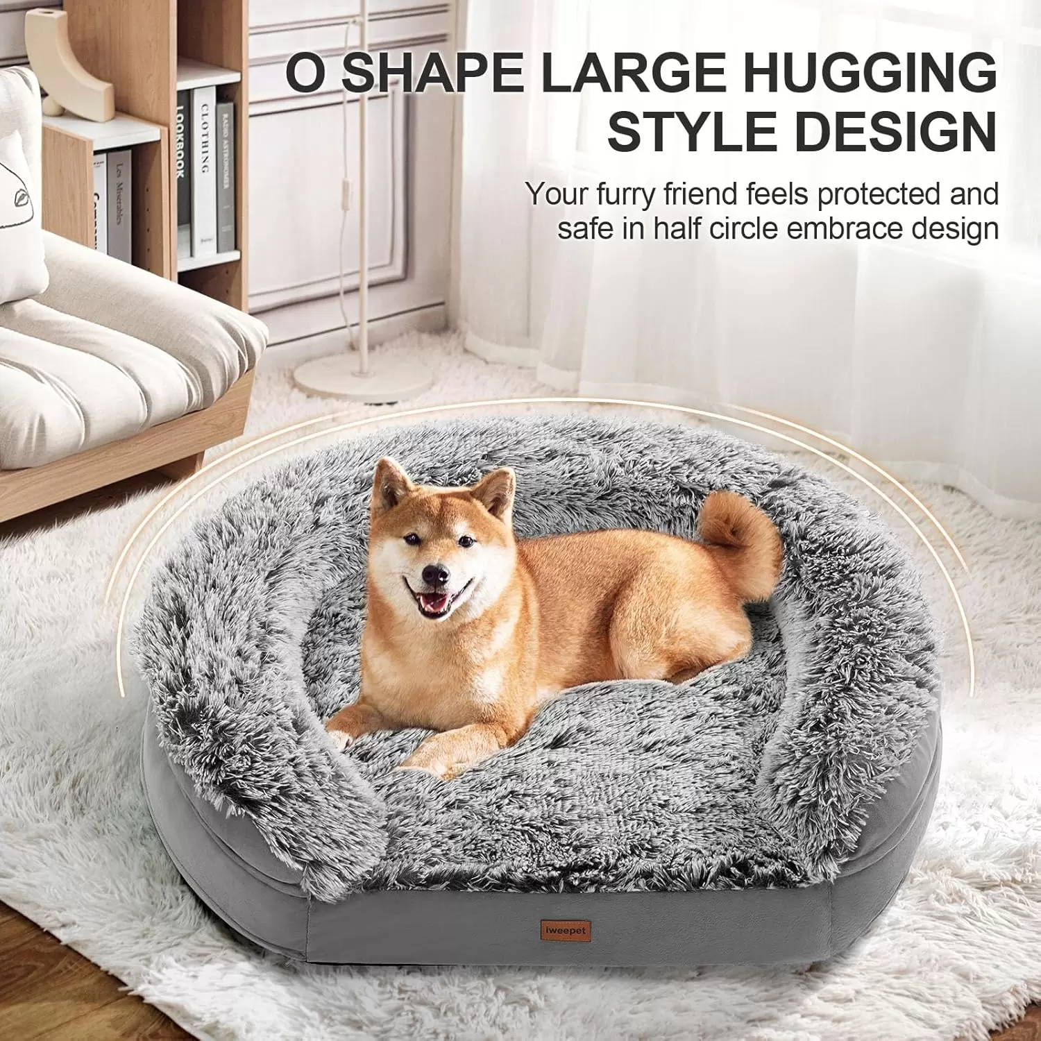 Diseño Semicircular Envolvente: La forma medio redonda de la cama brinda una sensación de seguridad y un “abrazo” que es ideal para perros ansiosos o sensibles, adaptándose a sus posturas de acurrucamiento.