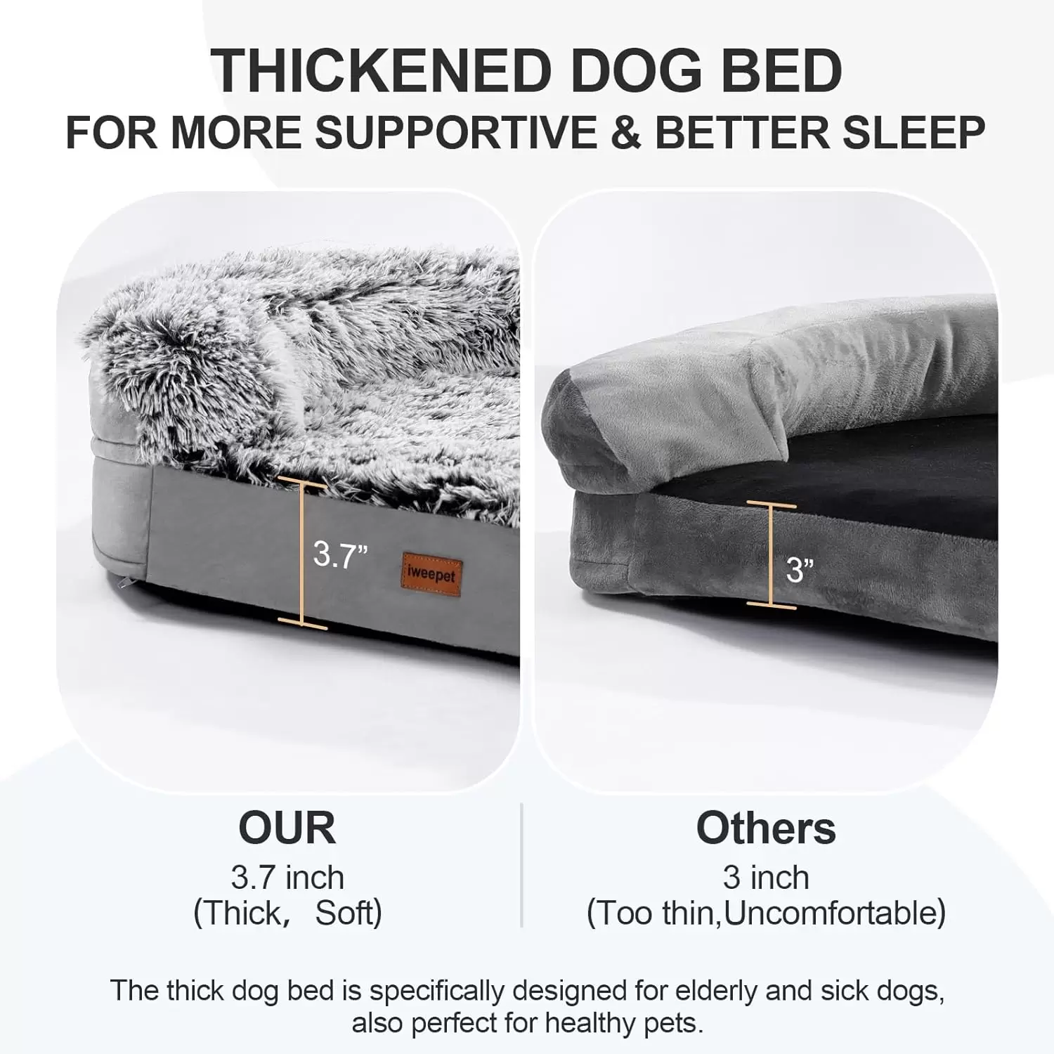 Espuma Viscoelástica de Alta Densidad (): La base del cojín ha sido mejorada a (3.7 pulgadas) de espuma viscoelástica (Memory Foam) de alta densidad (28D). Esto garantiza un apoyo excepcional y duradero, aliviando la presión en articulaciones y huesos para un sueño más profundo y reparador.