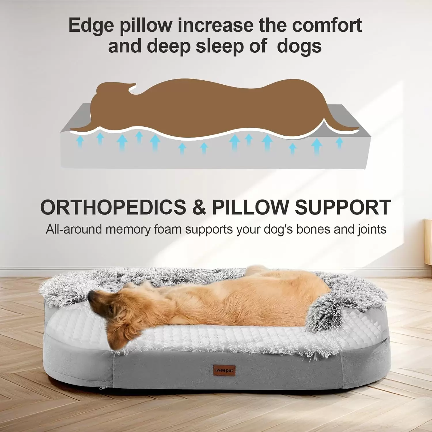 ☁️ Cama Ortopédica Premium Anti-Ansiedad para Perros (Con Borde de Apoyo y Base Viscoelástica)