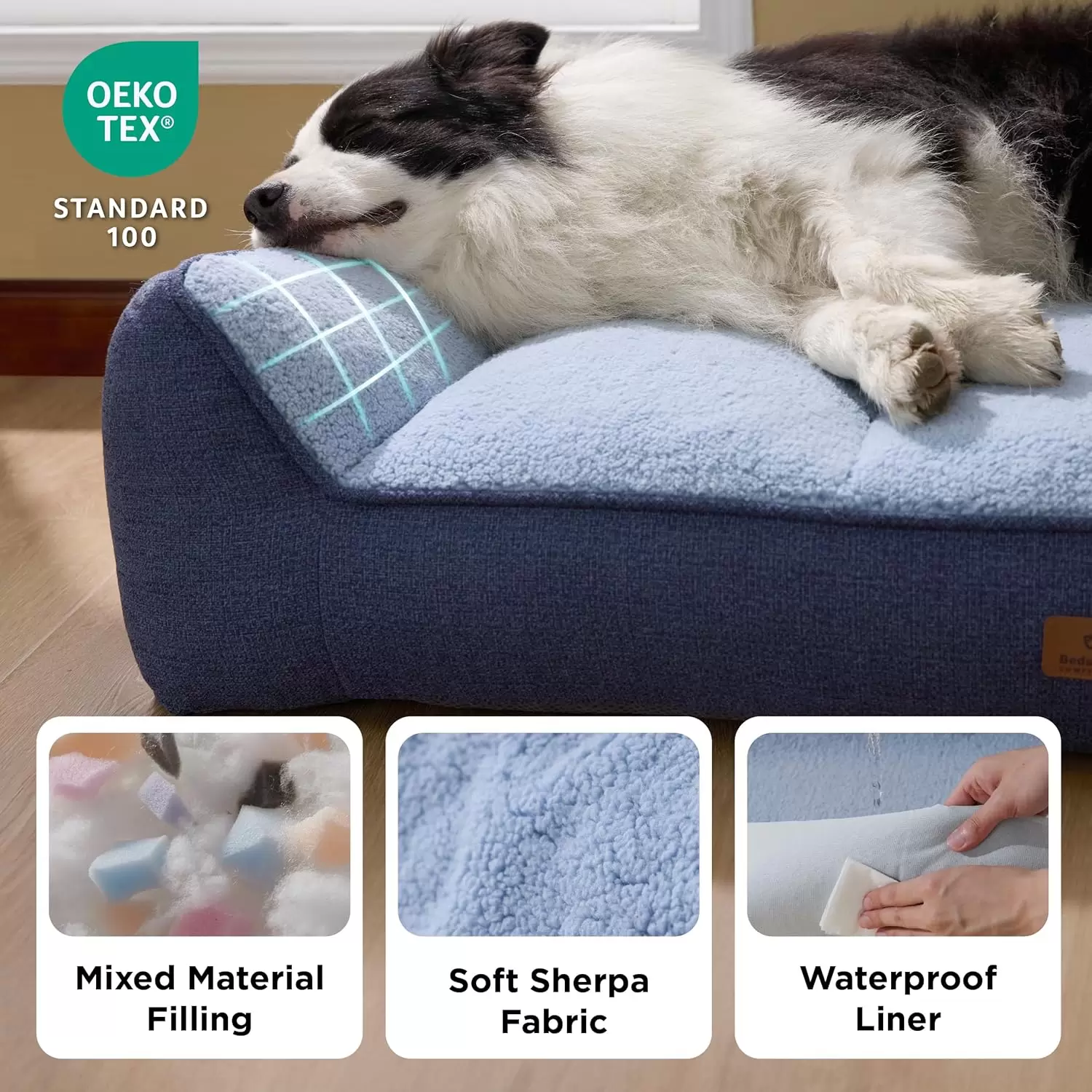 Materiales Certificados y Seguros: Fabricada con suave forro polar sherpa y con certificación OEKO-TEX, esta cama es segura y acogedora. Además, la base antideslizante añade estabilidad y seguridad en cualquier tipo de suelo.