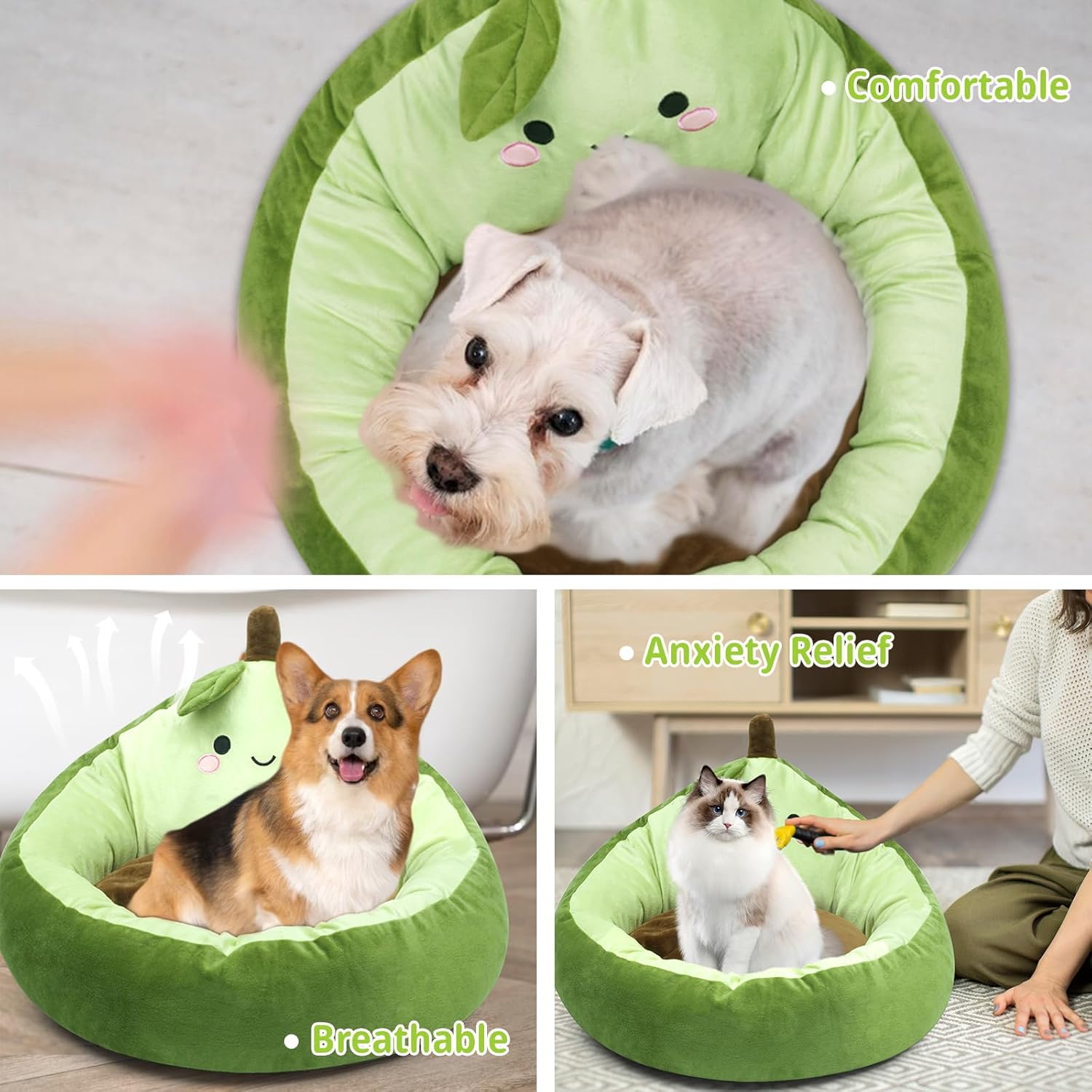 Diseño cálido y suave: diseñado como una cama de ansiedad para perros, la forma redonda ayuda a tu perro y gato a rizarse y excavar como lo haría en un entorno natural, y el borde elevado proporciona soporte para la cabeza y el cuello. A tu cachorro y gato les encantará