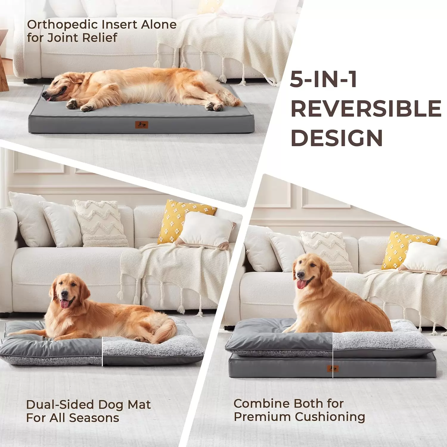 👑 Cama Perro Ortopédica 5-en-1 Premium: Lujo, Soporte y Doble Estación