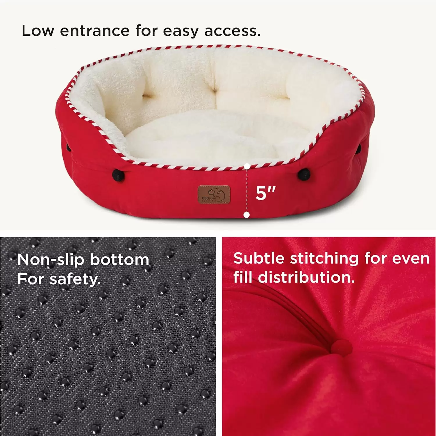 Cama de felpa Sherpa ultrasuave con diseño navideño. Paredes reforzadas para soporte articular y cuello. Certificación OEKO-TEX, antideslizante y lavable a máquina para un cuidado fácil.