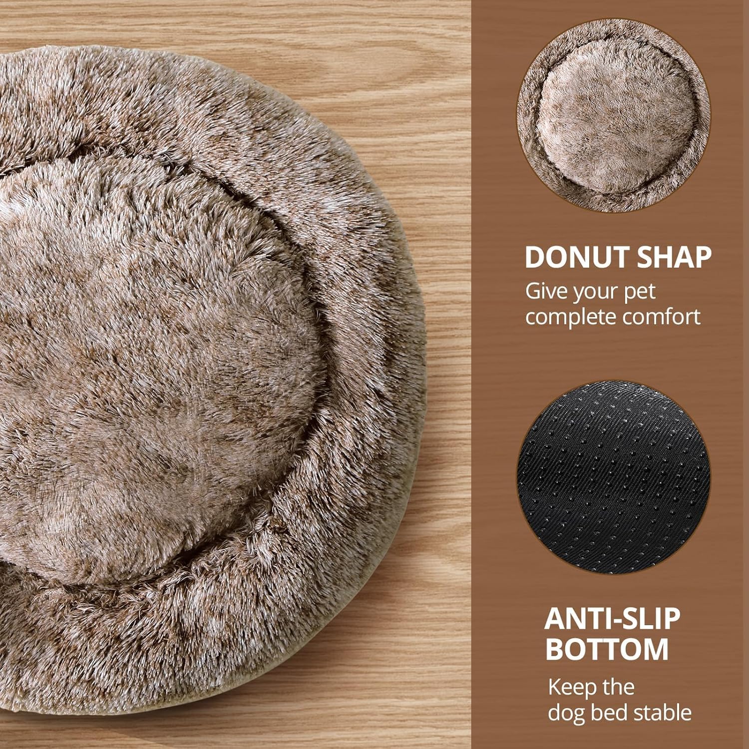 Variedad de tamaños disponibles: Cinco tamaños de cama de cojín para gatos y perros están disponibles para su elección. Recomendamos una cama para perros de 20 pulgadas para perros pequeños (hasta 15 libras), una cama redonda para perros de 23 pulgadas (hasta 25 libras), una cama redonda para perros de 27 pulgadas (hasta 35 libras), una cama redonda para perros de 31 pulgadas (hasta 45 libras) y una cama calmante para perros de 36 pulgadas (hasta 75 libras), se recomienda medir el tamaño de tu mascota antes de comprar