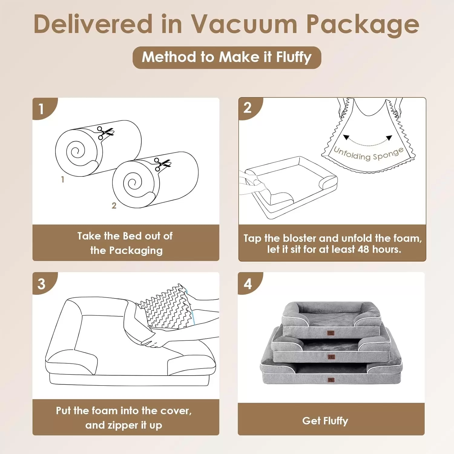 ⚠️ Recordatorio: Tras desempacar, deje que el relleno de espuma se expanda en un lugar seguro durante a horas antes de usar para que recupere su forma y grosor máximo. El relleno de espuma no es lavable.