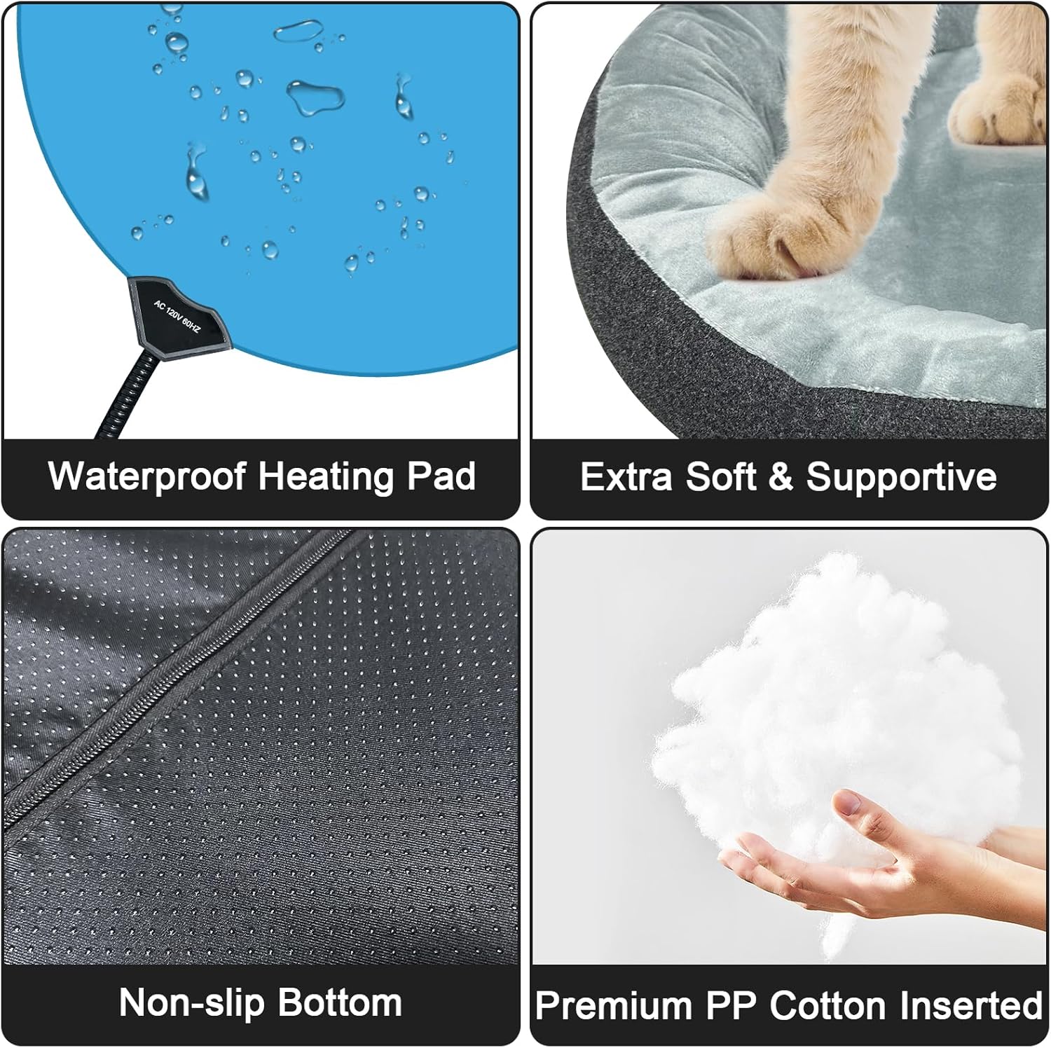 Cómo mantener a tu querido gatito caliente en la estación fría? Esta cama térmica para mascotas es muy fácil de usar, simplemente conéctala y comenzará a calentarse (Nota: sin controlador). Equipado con tecnología avanzada de control de temperatura, asegurando que nunca se caliente demasiado, puedes estar seguro de que tu gato está sano y salvo. Con un cable de alimentación envuelto en acero de 78.7 pulgadas, es resistente a las mordeduras y al agua, puede evitar eficazmente que tu mascota roiga el cable de alimentación.