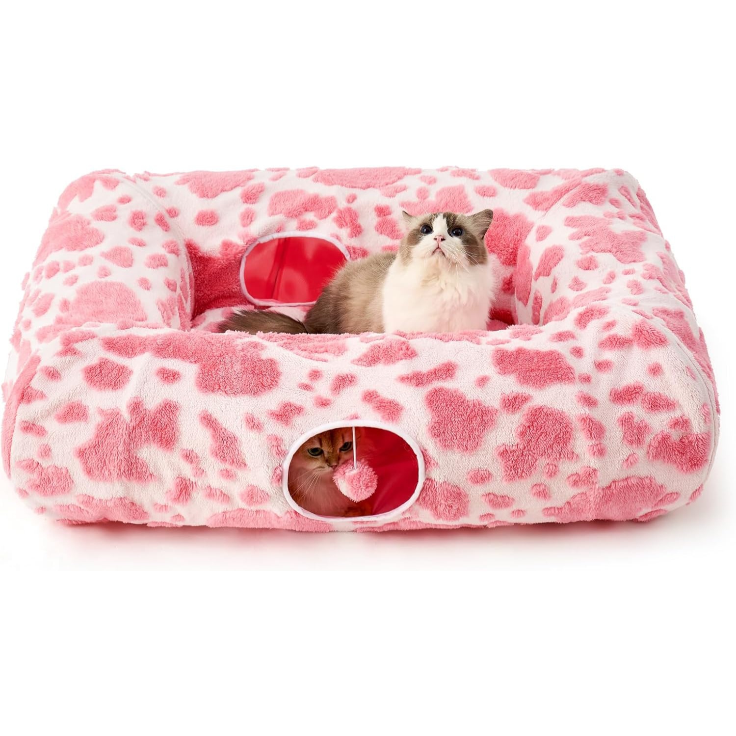 Cama de túnel versátil para gatos: los túneles para gatos de interior se transforman de un túnel de juego en una cama acogedora, perfecta para gatos de hasta 15 libras y mascotas pequeñas como conejos. Con una zona de juego oculta y un lugar para dormir cómodo, es ideal para hogares con múltiples mascotas, ofreciendo diversión y relajación en un diseño elegante.