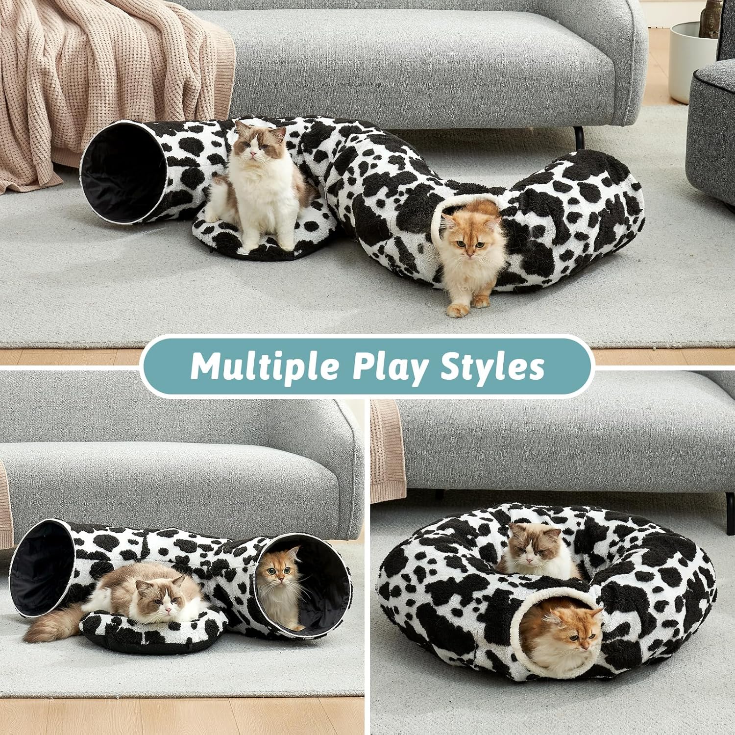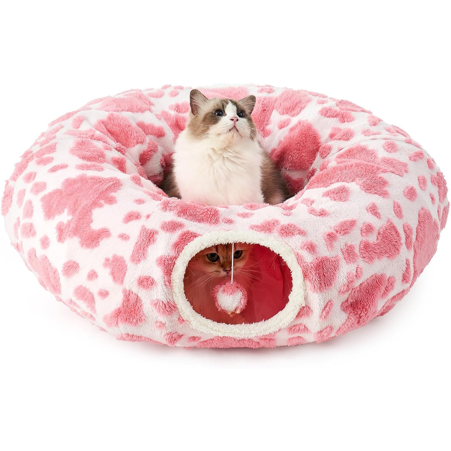 Cama de túnel versátil para gatos: los túneles para gatos de interior se transforman de un túnel de juego en una cama acogedora, perfecta para gatos de hasta 15 libras y mascotas pequeñas como conejos. Con una zona de juego oculta y un lugar para dormir cómodo, es ideal para hogares con múltiples mascotas, ofreciendo diversión y relajación en un diseño elegante.