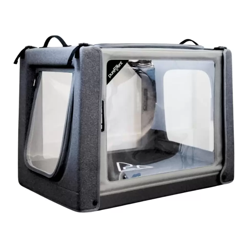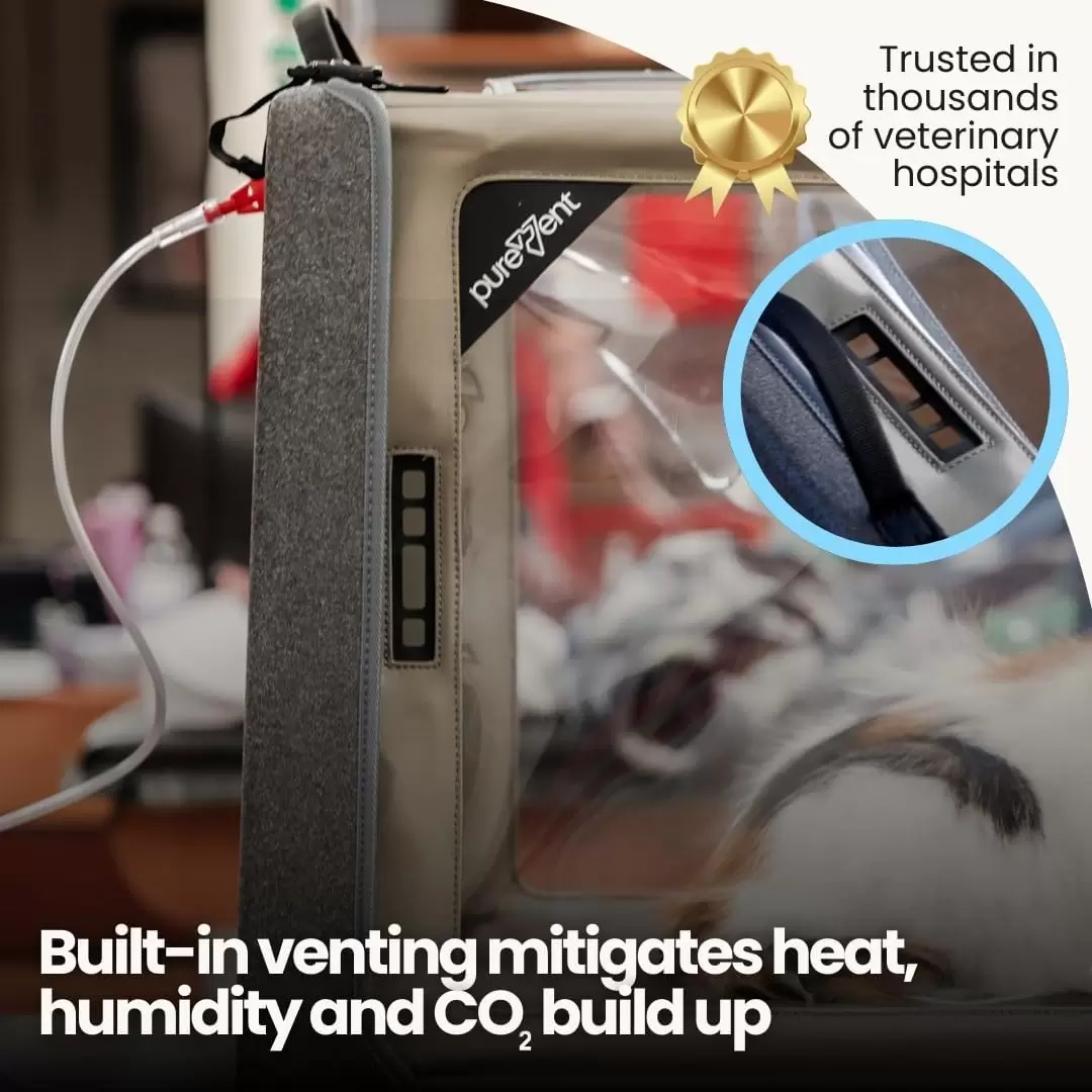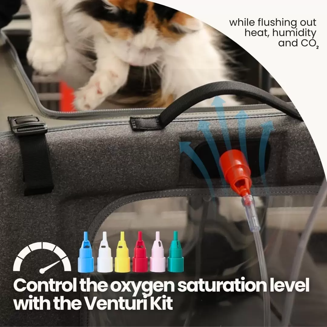 Diseñado y probado por Pawprint Oxygen , los líderes en terapia de oxígeno para mascotas Acheive 25-60% de saturación de oxígeno utilizando el sistema Venturi Las rejillas de ventilación integradas mantienen la cámara a salvo del calor, la humedad y la acumulación de cO2. Plegable y fácil de almacenar, se instala en minutos, completo con estuche de transporte. Requiere un concentrador de oxígeno de grado médico de 5 L para suministro de oxígeno. Los concentradores de oxígeno que no requieren un RX no se recomiendan para uso en mascotas.