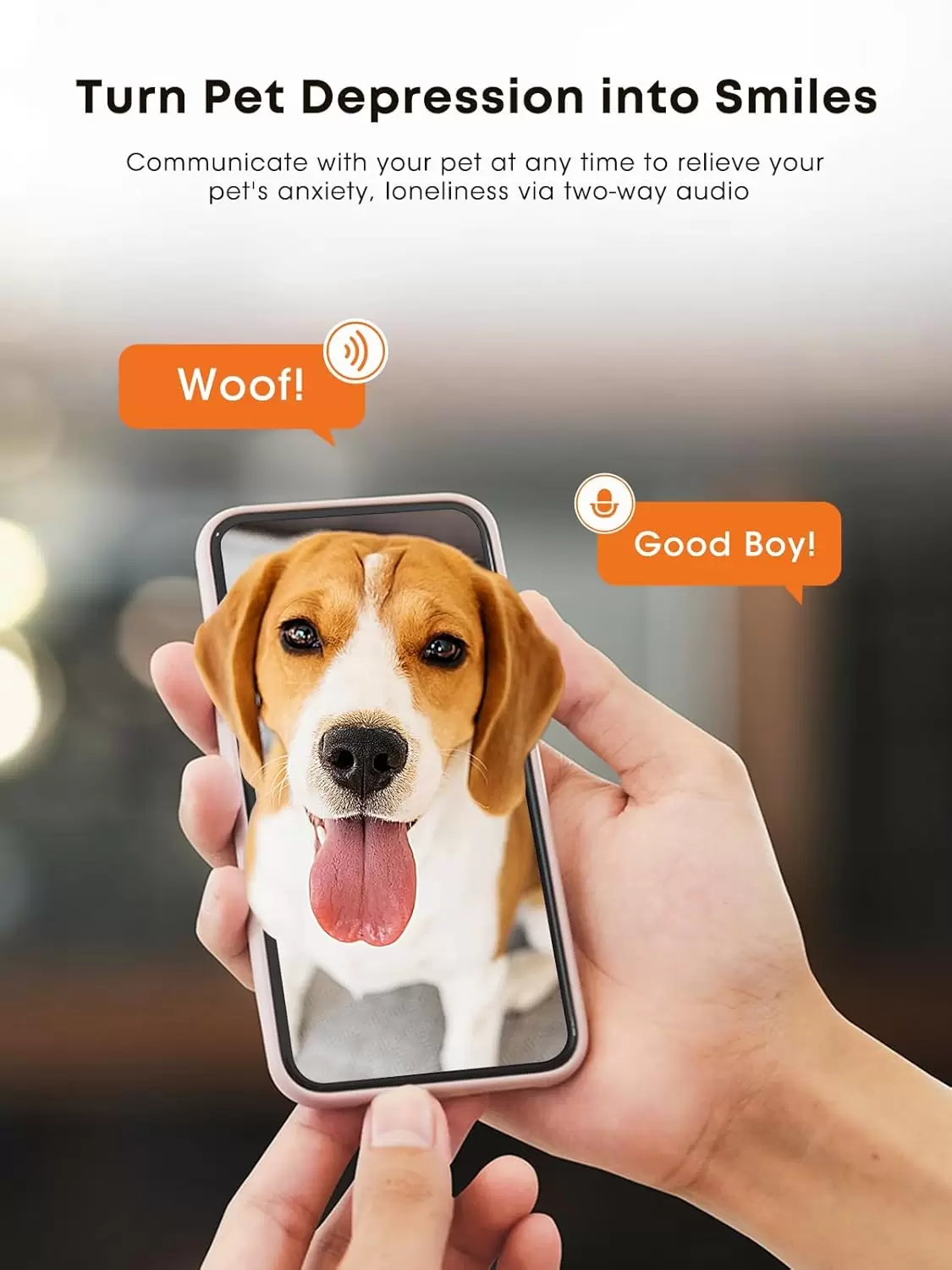 Audio bidireccional, sin ansiedad por separación: esta cámara para mascotas con dispensador de golosinas permite hablar e interactuar con mascotas en cualquier momento para aliviar su ansiedad por separación. Conéctate con tu mascota mientras estás fuera para calmarla y hacerla feliz.