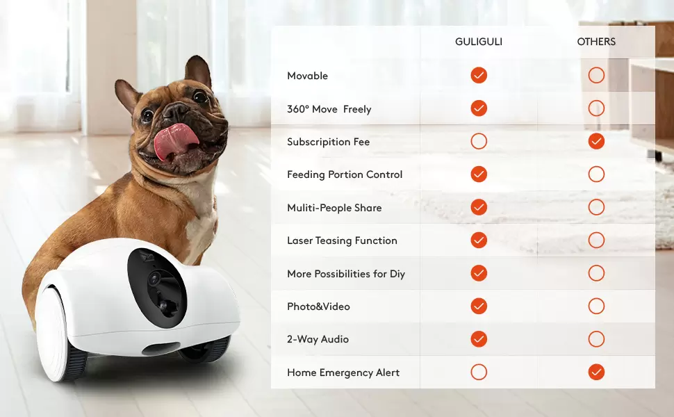 Compañero remoto: el robot móvil viene con una cámara Full HD 1080P para perros que puede verificar el estado de tus mascotas en cualquier momento desde tu teléfono. Puede ayudarte a encontrar a tus mascotas en diferentes lugares y proporciona protección de 360° para tus queridas mascotas y hogar. Compatible con iOS / Android con WiFi de 2.4 GHz (WiFi de 5 GHz no es compatible actualmente)
