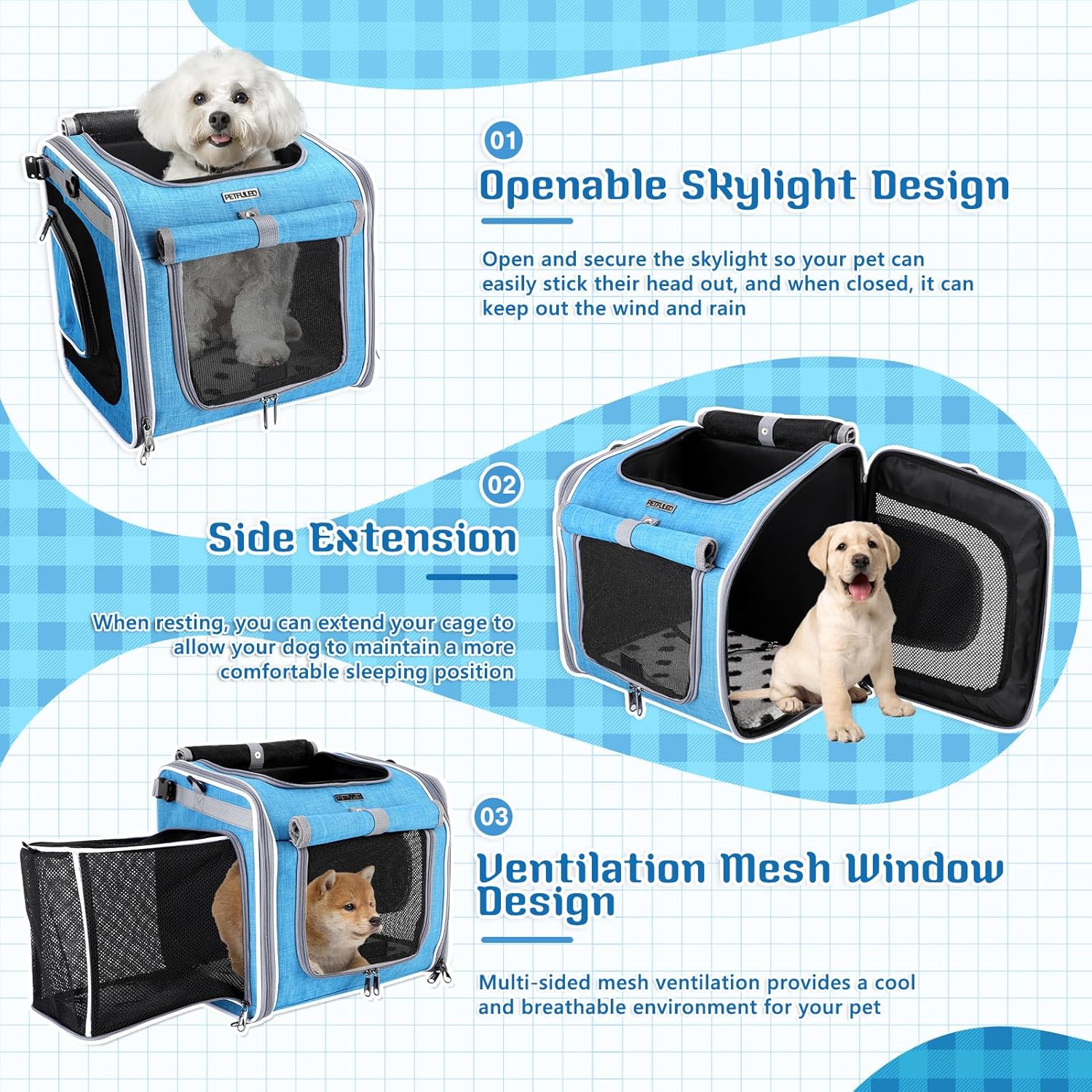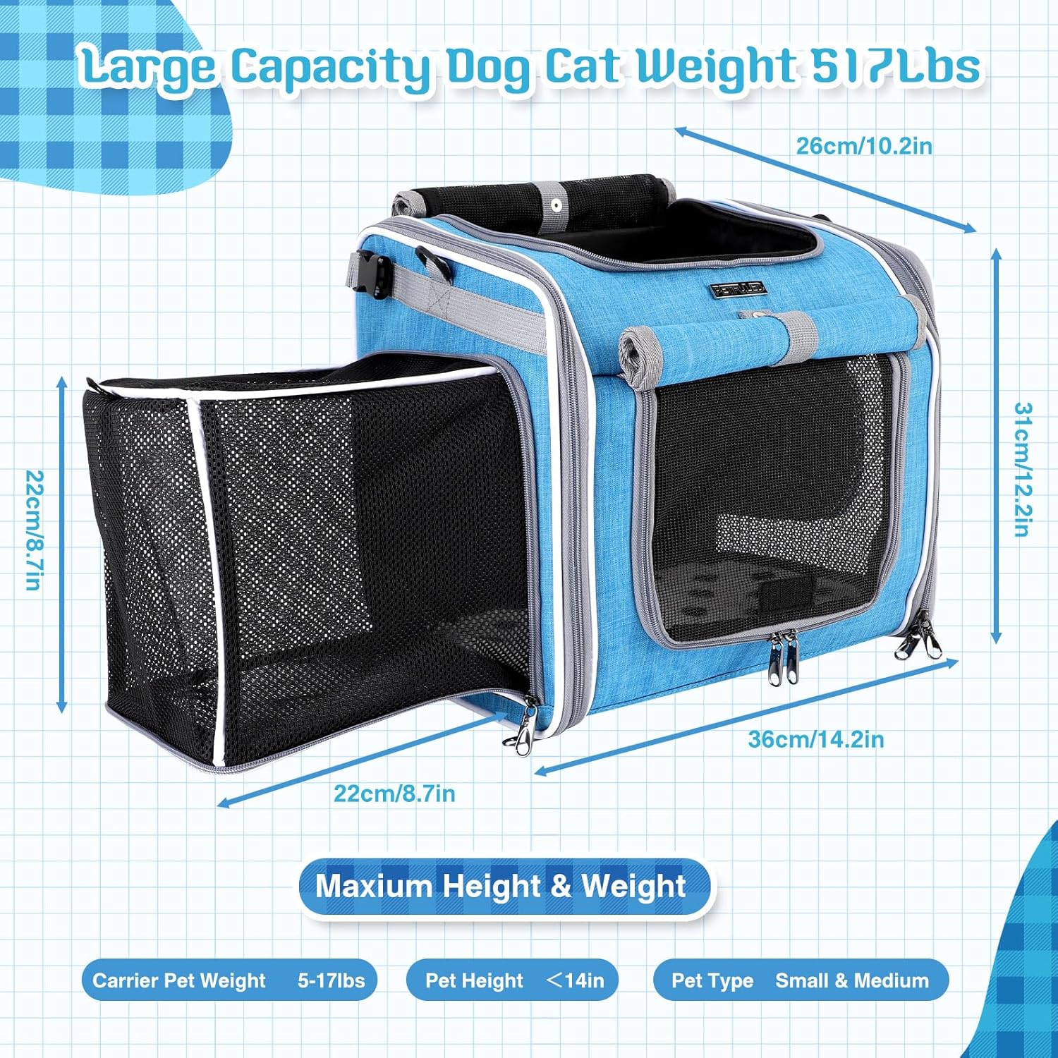 Diseño plegable: la bolsa de transporte para perros es plegable para ahorrar espacio y fácil almacenamiento. Disfruta de la flexibilidad y comodidad de un diseño plegable que hace que viajar con tu gato o perro sea muy fácil.