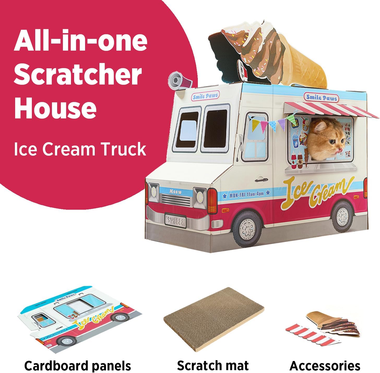 Casa de Cartón Camión de Helados para Gatos 32x32x57 Cm