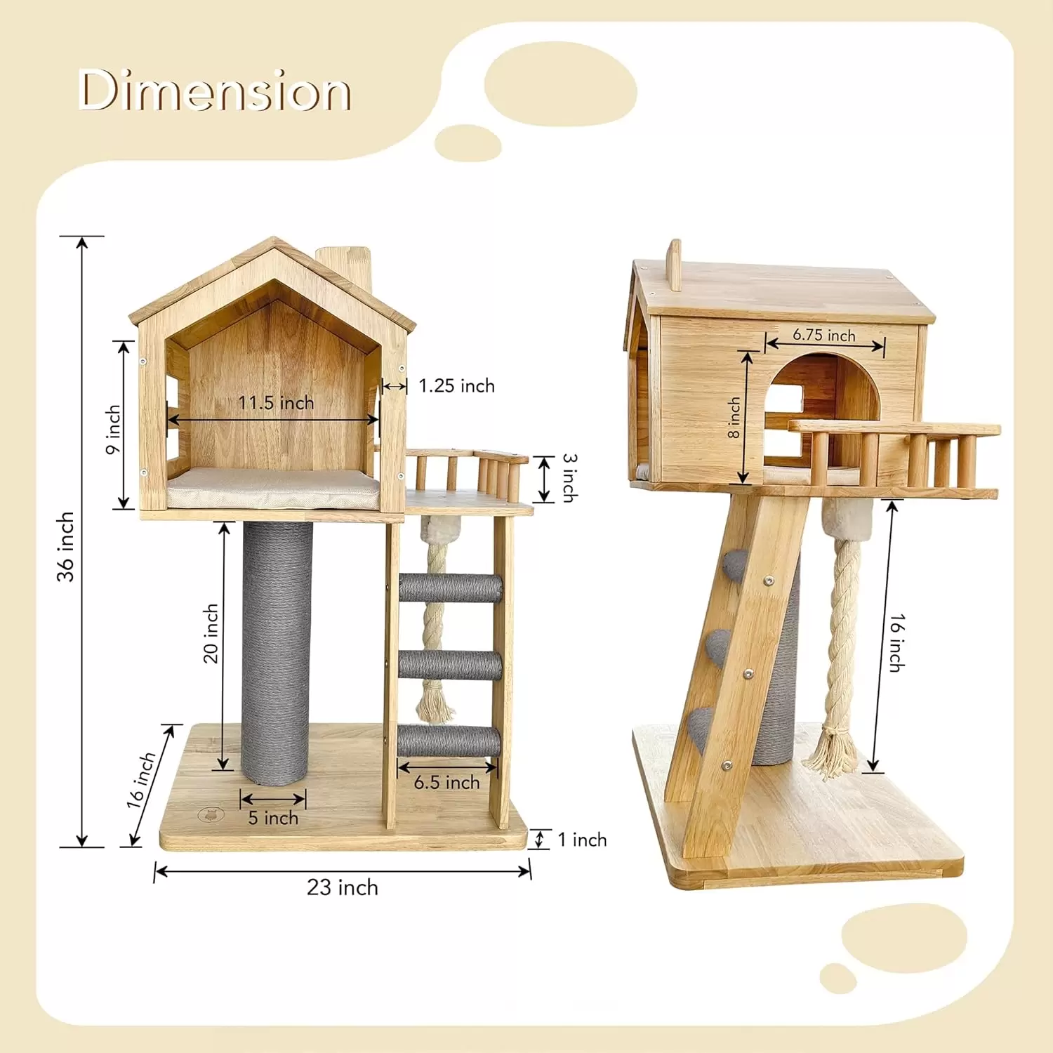 Casa de Madera Premium (91x41x58 cm): Rascador Sisal y Acabado Impermeable para Gatos