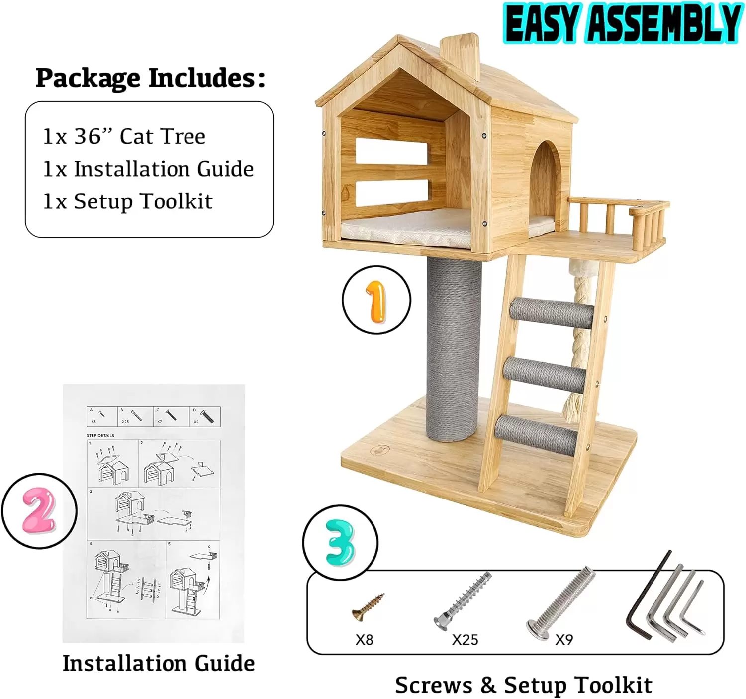Armado Rapido en 20 Minutos: Construya este lujoso refugio en tiempo record. El montaje es sencillo y rapido, permitiendo que su gato apruebe y disfrute de su nuevo condominio casi de inmediato.