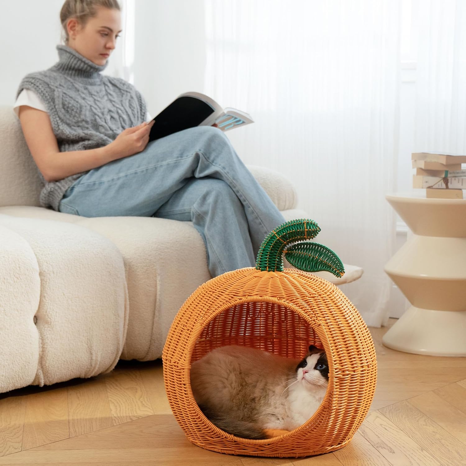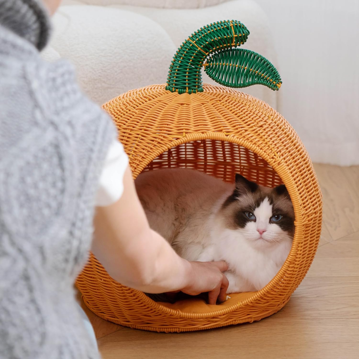 100% segura y acogedora: la casa para gatos está hecha con material de ratán ecológico, con proceso puro tejido a mano, superficie lisa y sin rebabas, por lo que es segura para ti y tu mascota. Viene con un cojín lavable, suave y cómodo, asegurando que tu amigo peludo se sienta cómodo en todo momento