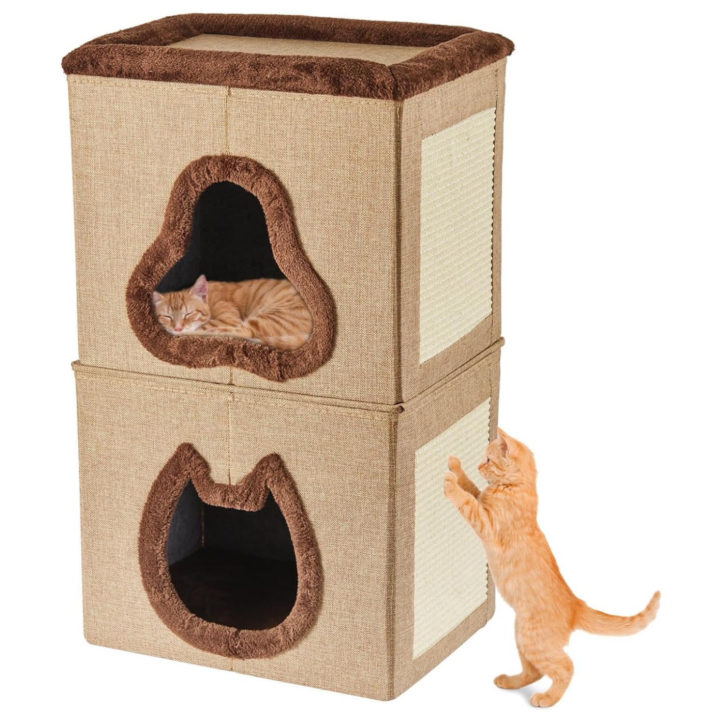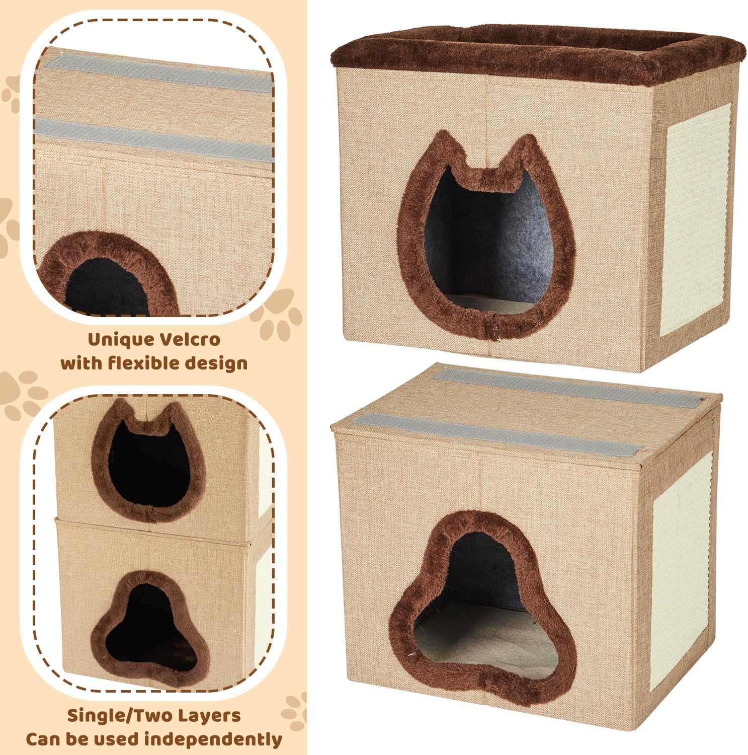 Casa para gatos 2 en 1: las casas para gatos de interior combinan dormir, jugar y rascarse en uno, utilizando espacio vertical sin ocupar mucho espacio, y la mejor característica es que se puede dividir en dos para satisfacer sus diferentes necesidades. Es ideal para familias de varios gatos. Tamaño: 15.8 pulgadas de largo x 11.8 pulgadas de ancho x 27 pulgadas de alto, altura de la monocapa: 13.8 pulgadas