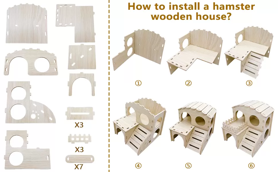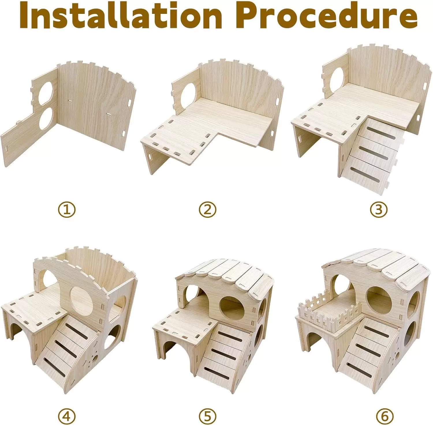 Cuerpo resistente: la casa de madera resistente para hámster está hecha de madera de alta densidad, no es fácil de dañar, sin clavos, segura para animales pequeños.