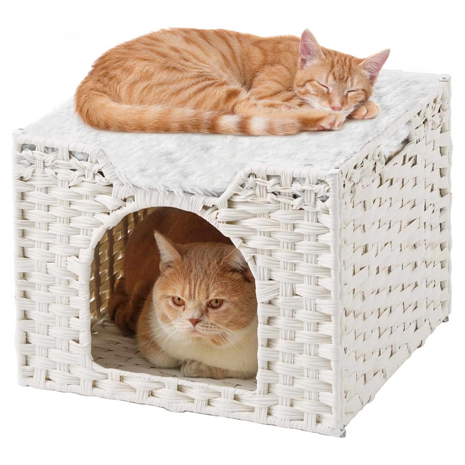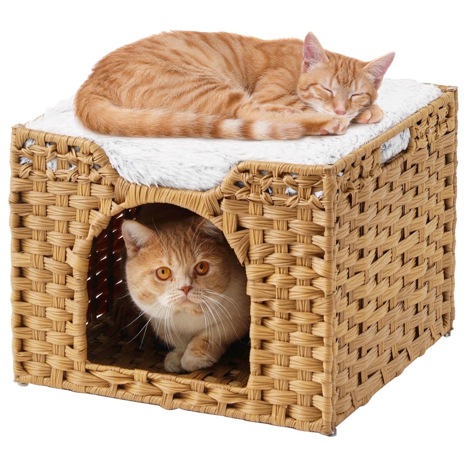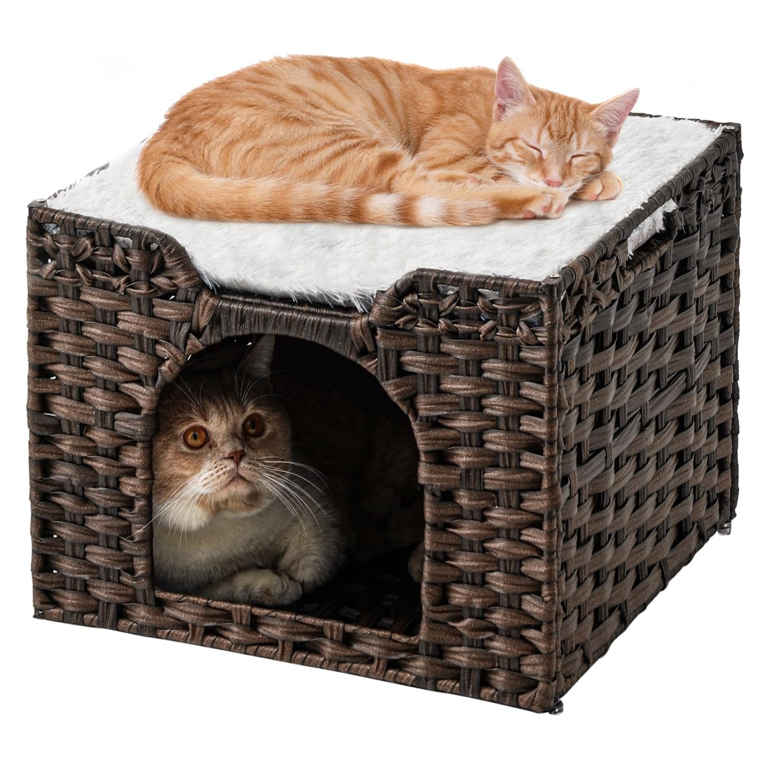 Fácil cuidado y elegante: el ratán del cubo para gatos es impermeable, simplemente retira el nivel superior para limpiar completamente el interior de las camas para gatitos de interior. Mantenga el ambiente de los gatos prístino con el mínimo esfuerzo. Estilo moderno que se adapta a cualquier lugar de la casa