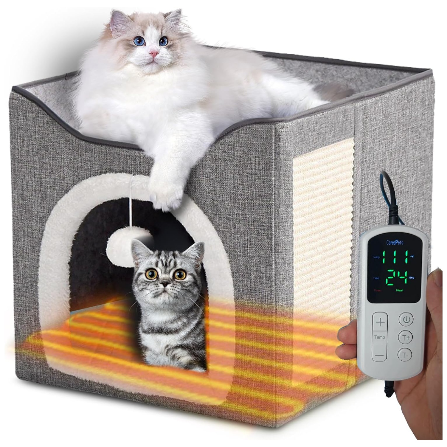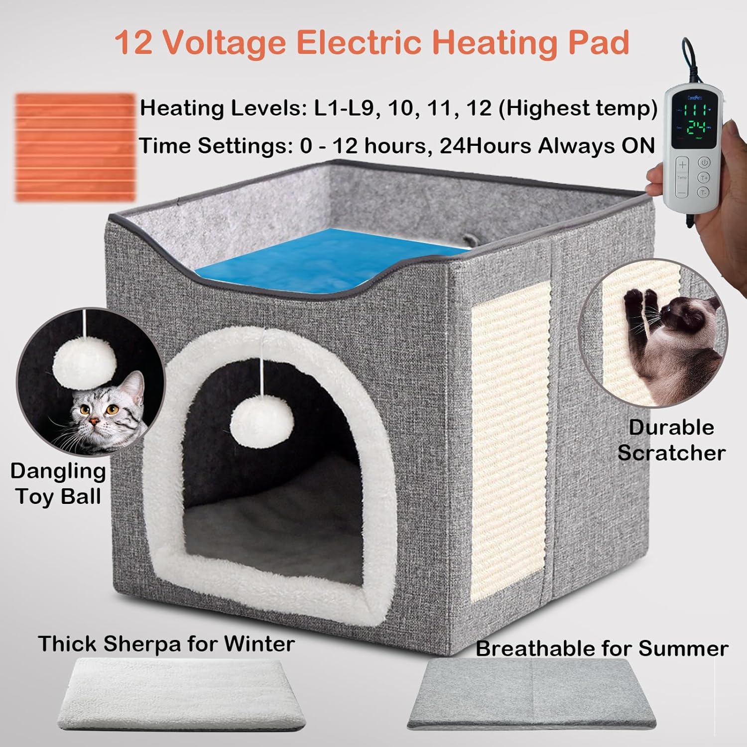 Cómodo y acogedor: el cable tiene una capa resistente a la masticación para gatos; la cama térmica para gatos proporciona un escondite acogedor y un espacio acogedor para que los gatos de interior descansen y jueguen en el interior. La combinación de la almohadilla térmica y el diseño de la casa cerrada ofrece la máxima comodidad y seguridad, lo que lo convierte en un lugar ideal para tomar una siesta y relajarse.