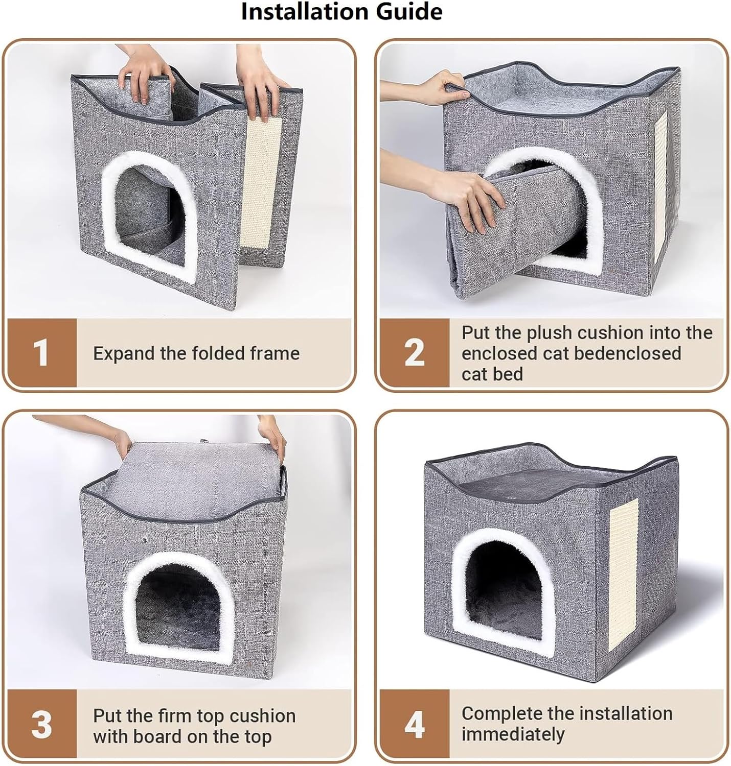 Versátil y portátil: el diseño plegable compacto de esta casa de cama para gatos permite una fácil reubicación. Ya sea que quieras colocarlo en tu sala de estar, dormitorio o cualquier otra zona deseada, se puede mover convenientemente, asegurando la comodidad de tu gato dondequiera que vaya.