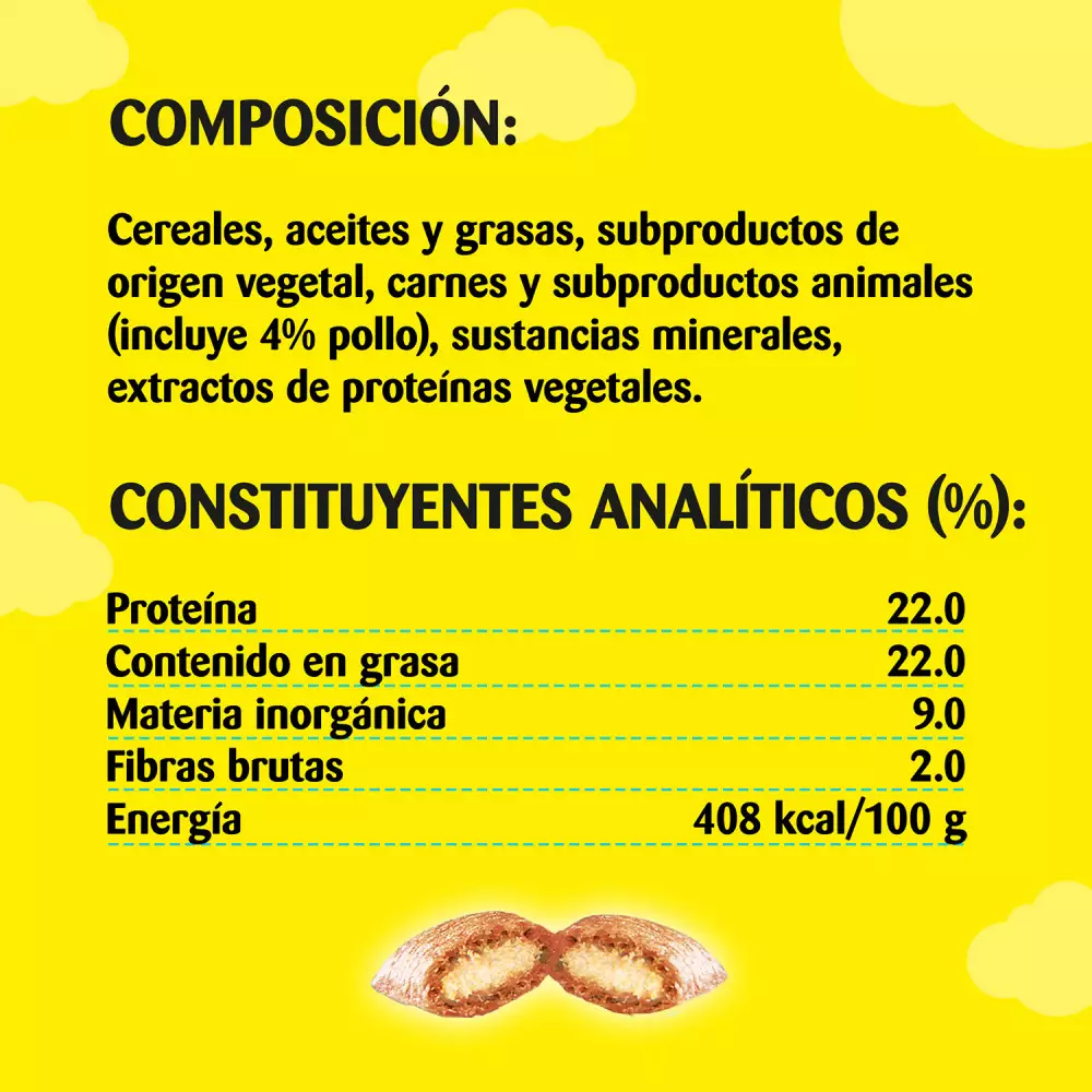 El relleno cremoso envuelto con una capa crujiente, es lo mejor para todos los gatos. Gracias al envase práctico en que vienen los snacks, se conservan siempre frescos. Así podrás mimar a tu gato todos los días.