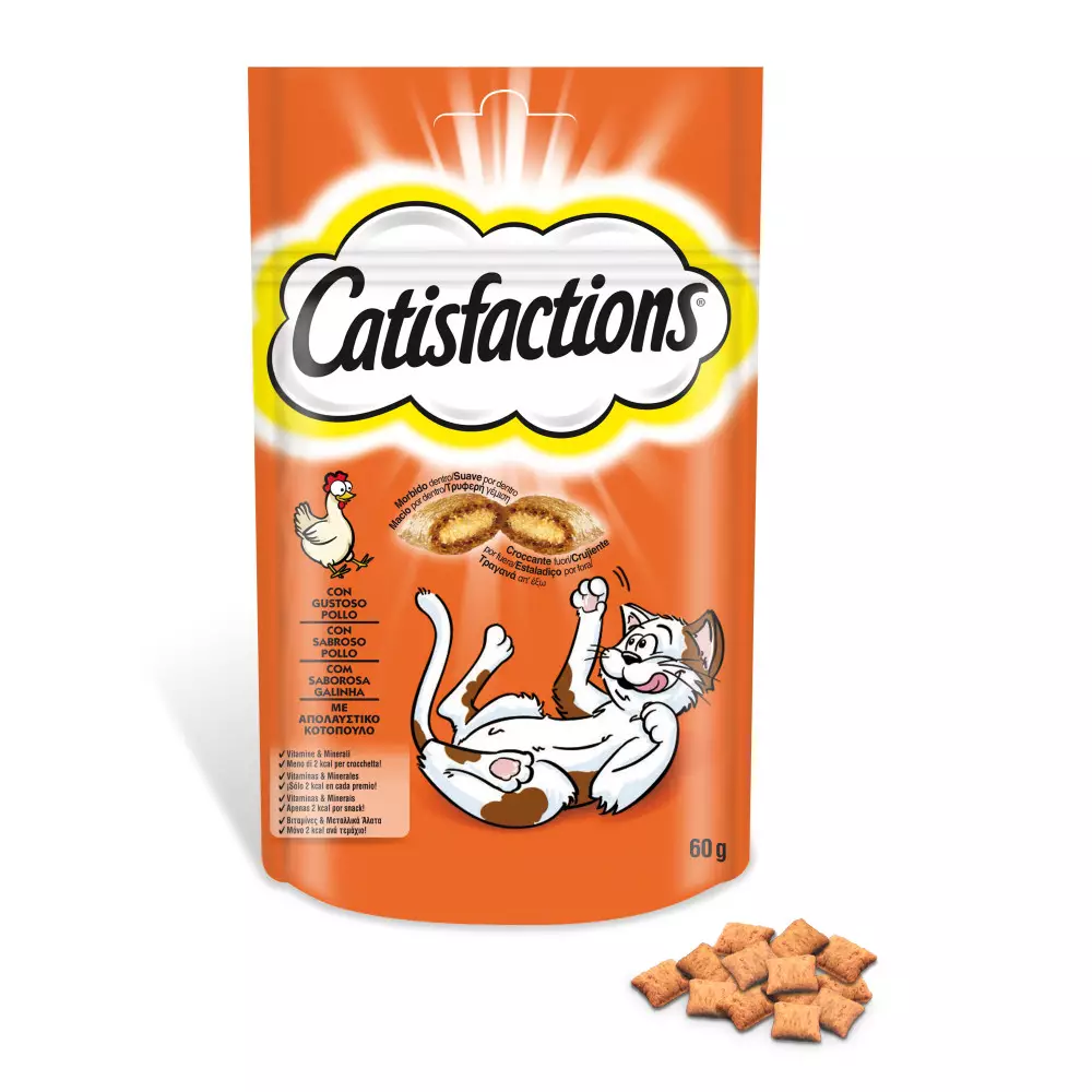 ¿Quieres mimar a tu gato con lo que él siempre soñó? Ahora tienes a tu disposición los snacks para gatos Catisfactions, la mejor recompensa para entre comidas, por fuera crujiente, por dentro cremoso.