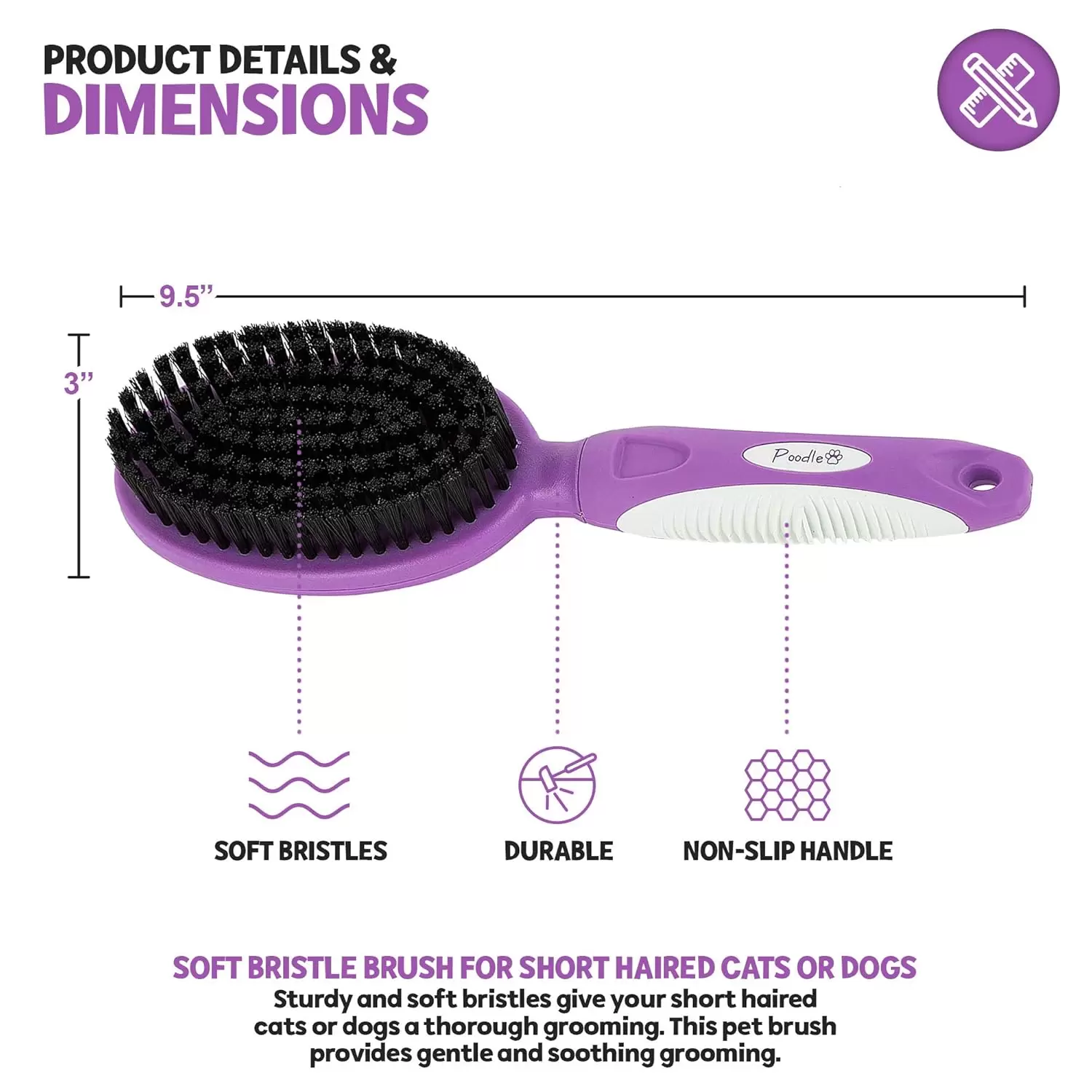CEPILLO PARA PIEL CORTO: Las cerdas resistentes y suaves dan a sus gatos o perros de corta edad un aseo completo. Este cepillo para mascotas proporciona un aseo suave y relajante.