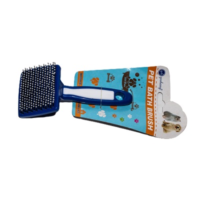 Cepillo plástico para mascotas con cerdas suave y recubiertas ideal para pelaje corto.