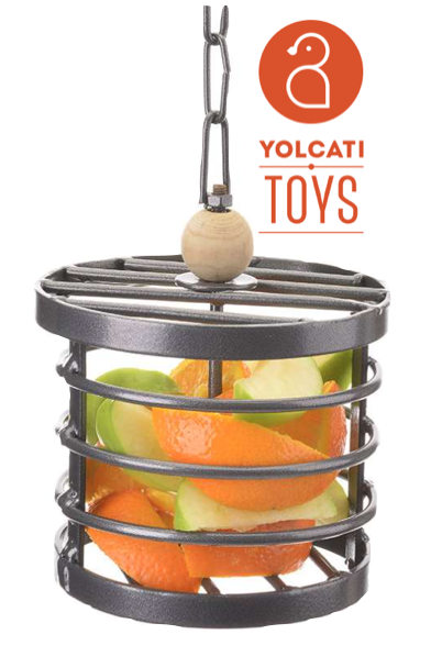 Este dispensador de frutas y verduras es ideal para loros medianos y grandes. Además de frutas y verduras frescas puedes añadir otros elementos como tiras de cartón o heno para aumentar el grado de estimulación.