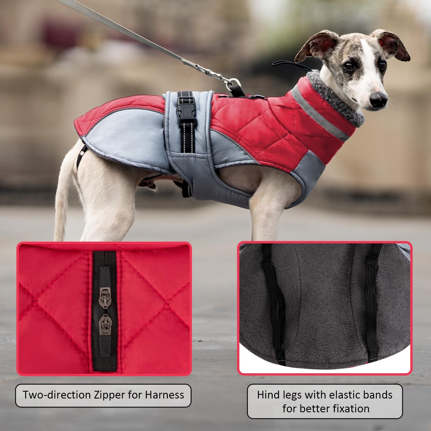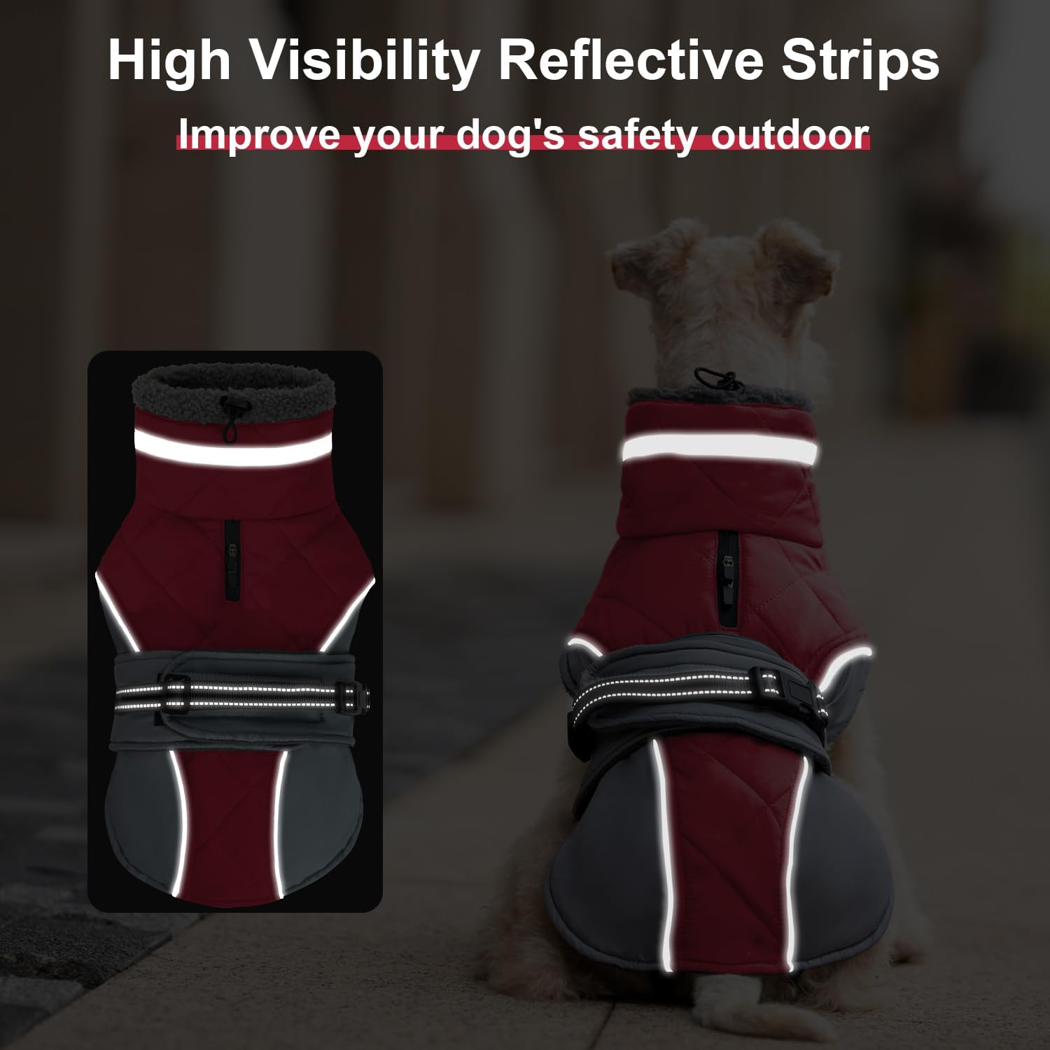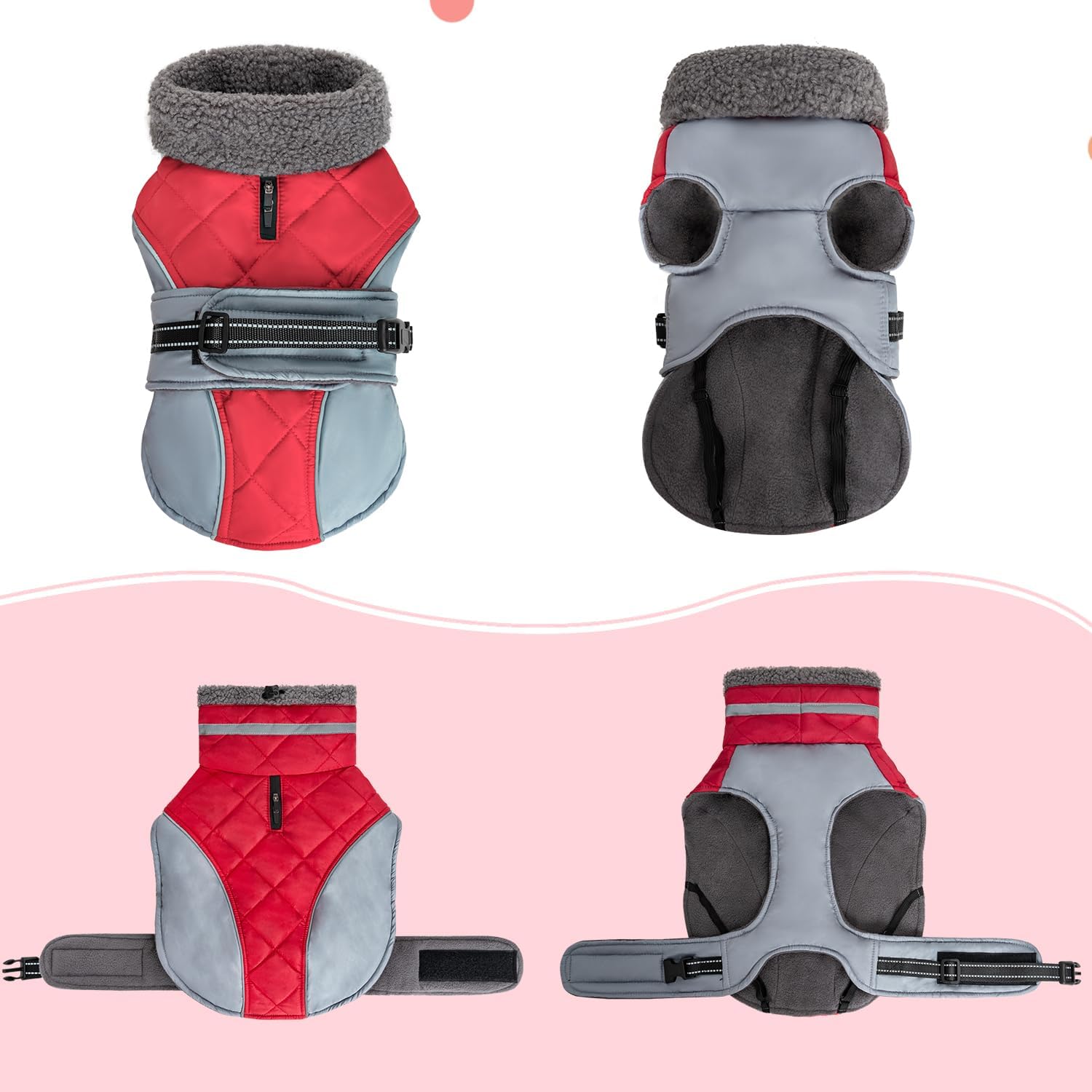 Abrigo reflectante para perro con agujero para arnés: la tira reflectante en la parte trasera y el cuello del abrigo cálido para perro puede mejorar la visibilidad, te ayuda a localizar rápidamente a tu mascota por la noche y garantizar la seguridad del perro al aire libre en entornos con poca luz. El agujero de la correa con cremallera en la parte posterior es compatible con la mayoría de los arneses, por lo que puedes poner la correa a través de él y luego simplemente siéntete libre de pasear a tu perro.