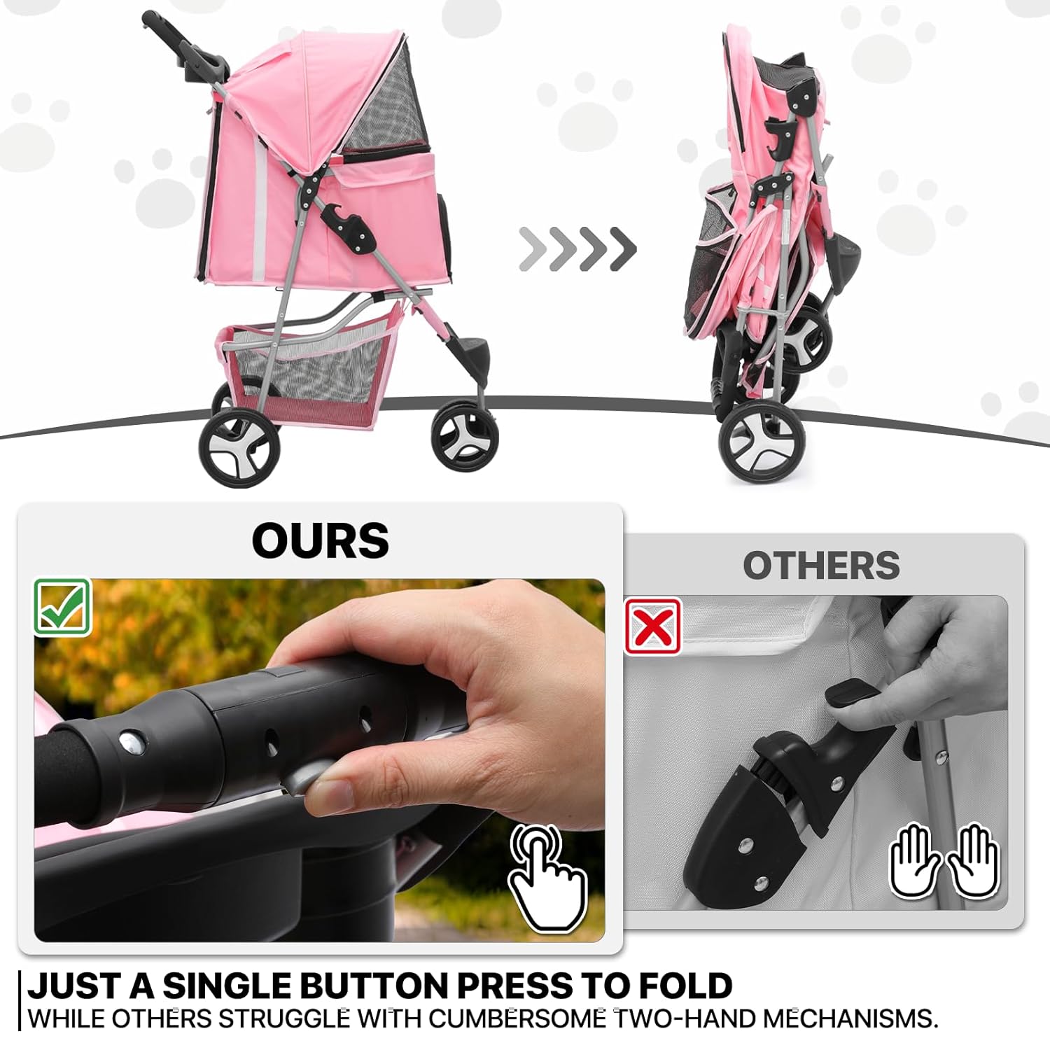 Diseño convenientemente plegable: este cochecito para perros es la solución perfecta para mascotas más pequeñas o mayores que no pueden soportar largos paseos. El diseño plegable hace que sea ideal para viajes y campamentos, y el soporte ligero pero resistente significa que no tendrás que preocuparte por nada.