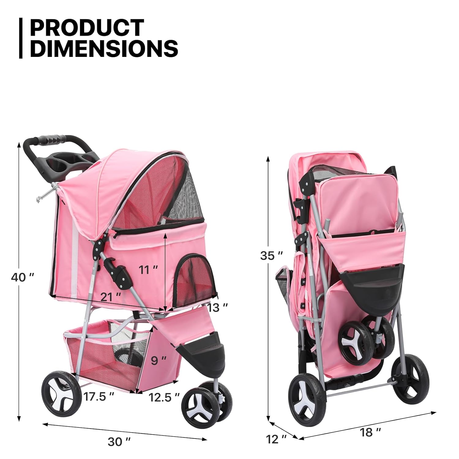 Coche de Seguridad Impermeable con 3 Ruedas para Mascotas