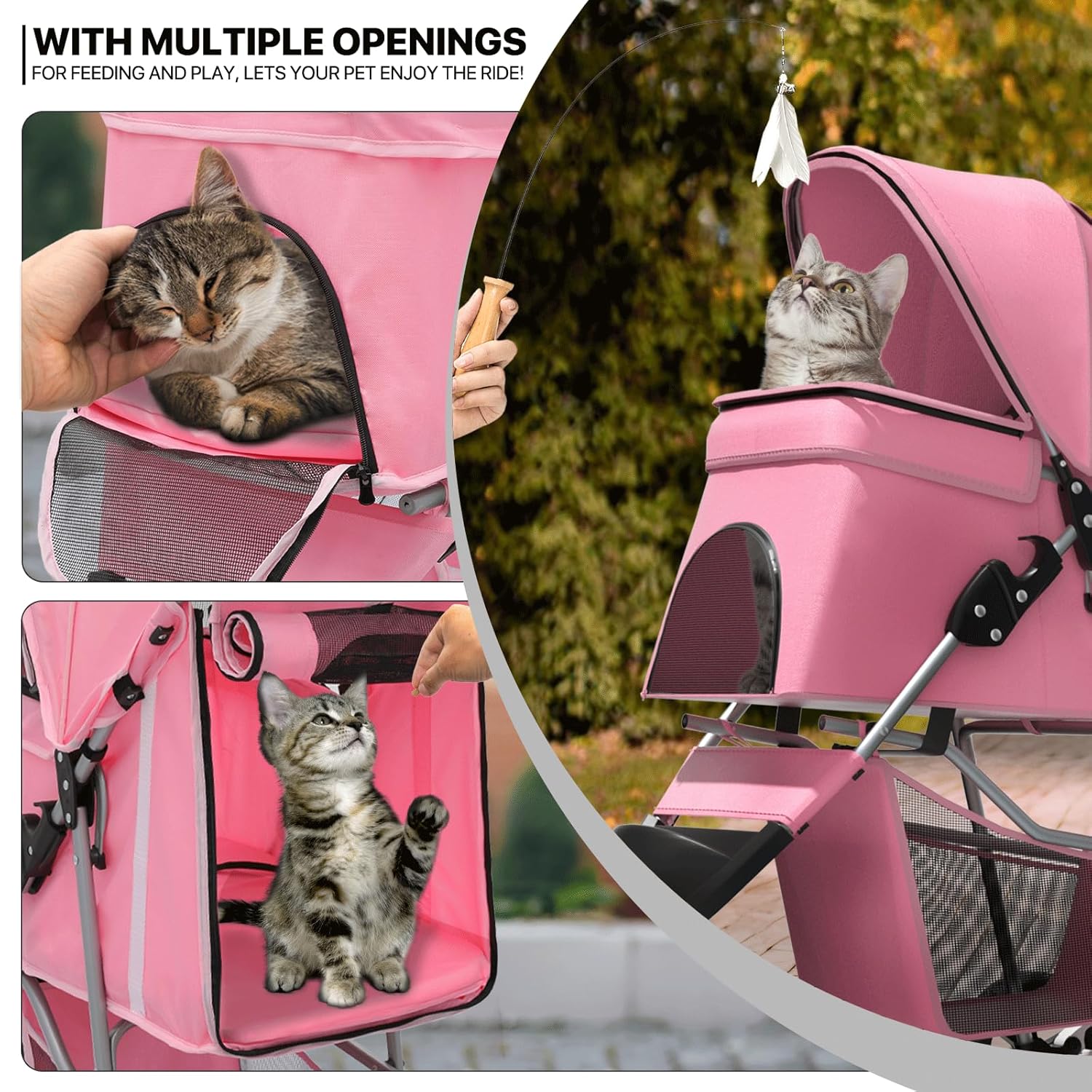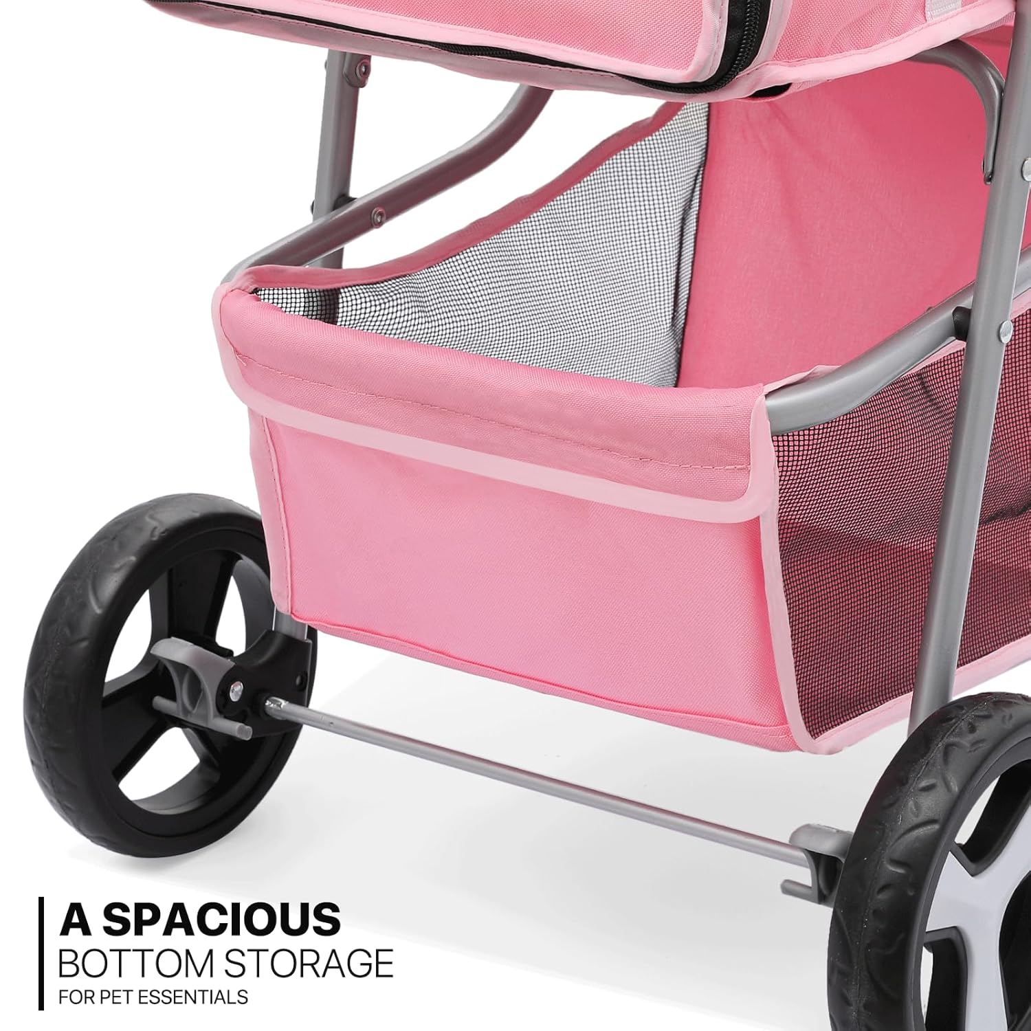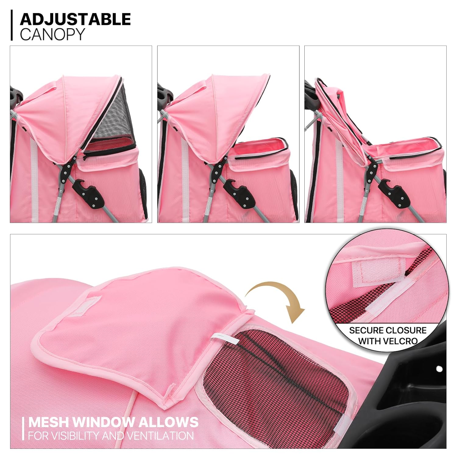 Diseño humanizado: con características prácticas como ruedas delanteras giratorias, portavasos y una ventana con capucha en la parte superior, este cochecito para mascotas hace que sacar a tu mascota a hacer ejercicio y aire fresco sea una experiencia fácil y agradable. El diseño espacioso y la cesta de almacenamiento del tren de rodaje te dan un montón de espacio para llevar tus artículos esenciales también.