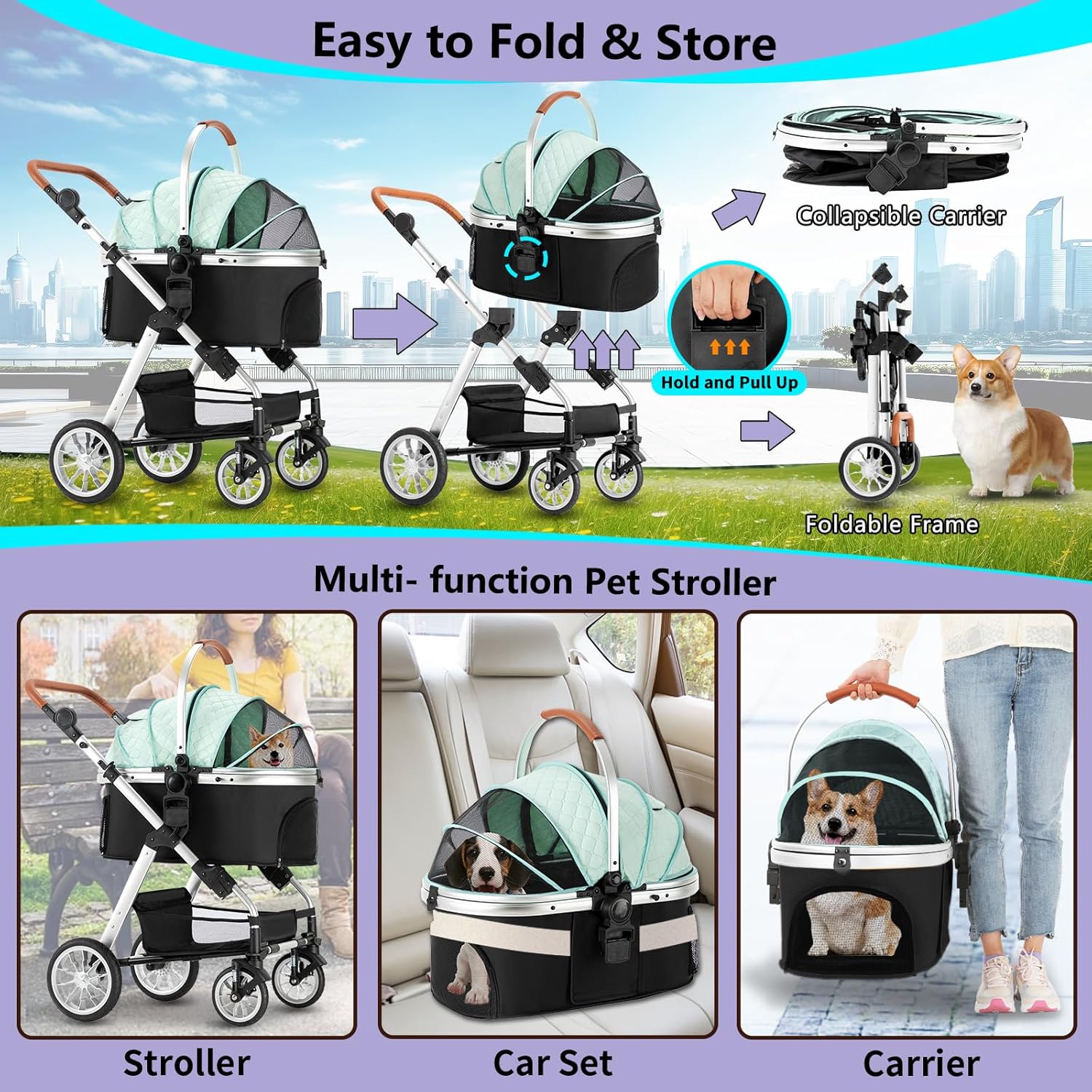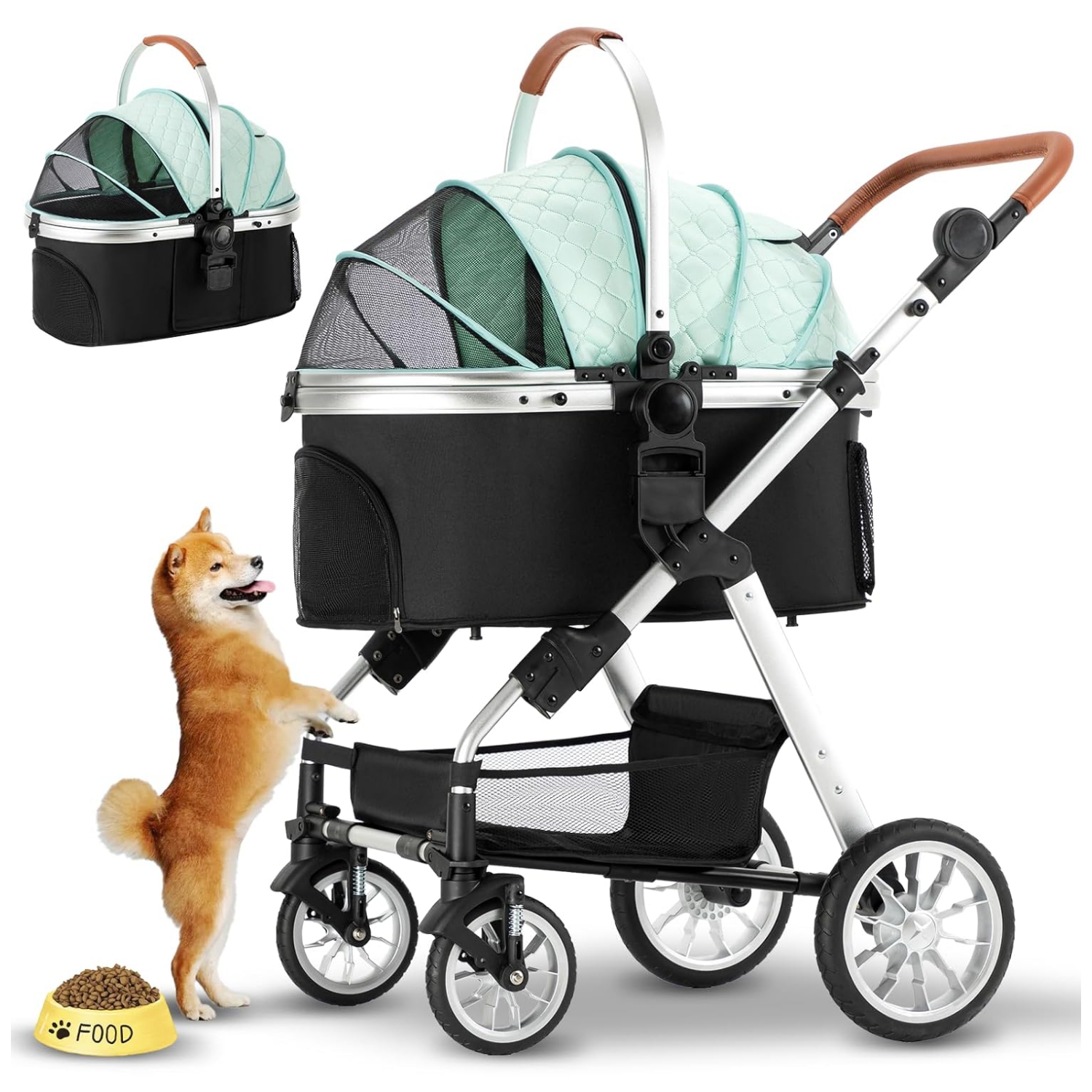 Cesta reversible Este cochecito para mascotas moderno y portátil no solo tiene telas mejoradas resistentes al desgaste, neumáticos y marco más fuertes, sino que también tiene la función de cambiar la dirección de la canasta. No solo puede dejar que las mascotas vean el hermoso paisaje frente a ellas, sino que también puede cambiar la dirección para que los propietarios puedan consolar a las mascotas asustadas en cualquier momento, dándoles suficiente espacio de seguridad y felicidad.