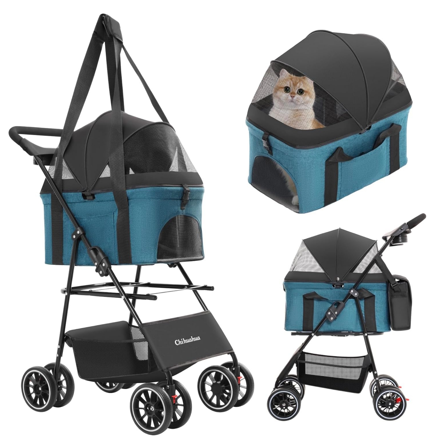 [Extras prácticos y configuración instantánea] Incluye una bolsa de mano para mamá, portavasos y una espaciosa cesta de almacenamiento para equipo de mascotas. Los bolsillos laterales mantienen las correas/golosinas a mano. Las ruedas se fijan en segundos. Desempaca y aventura con tu amigo peludo