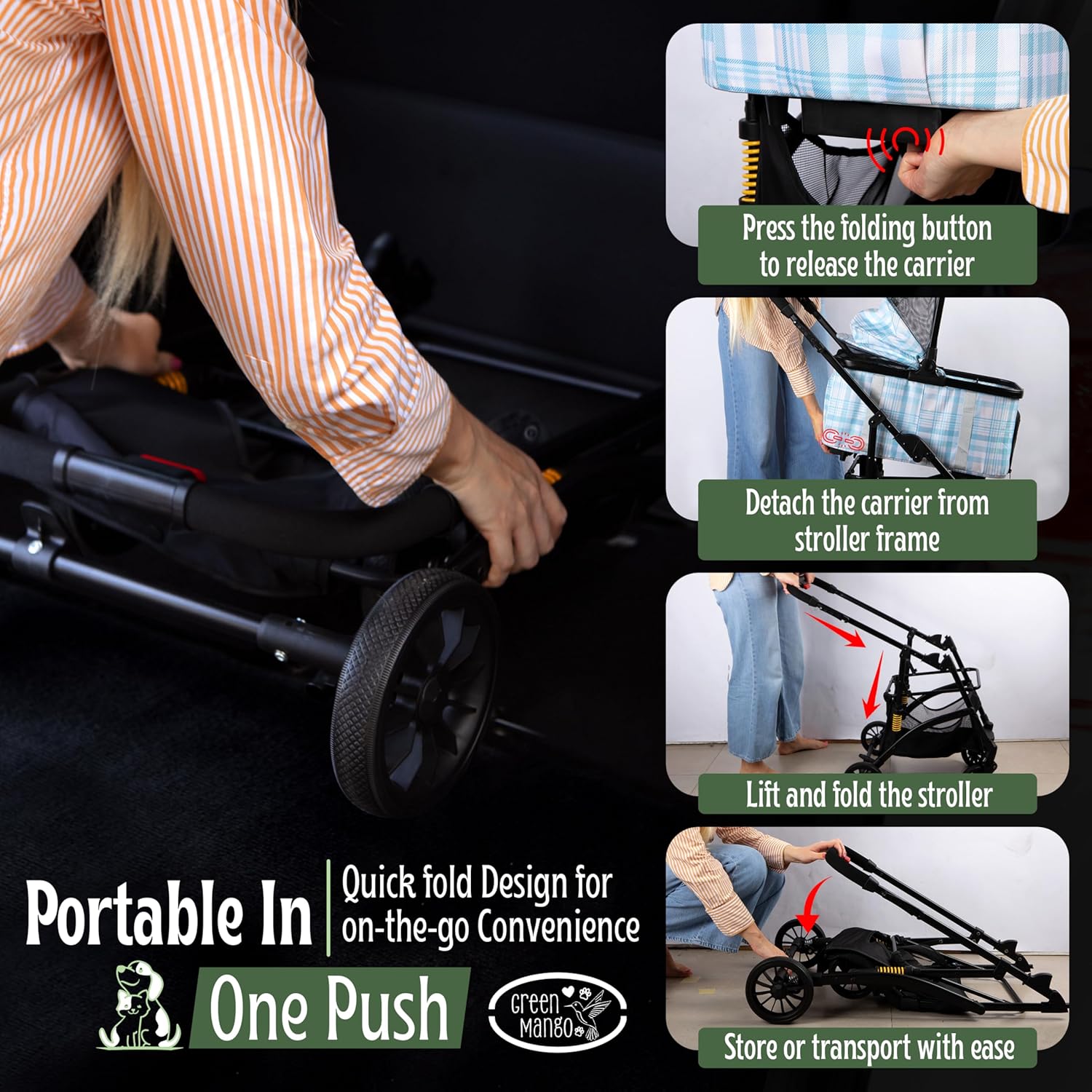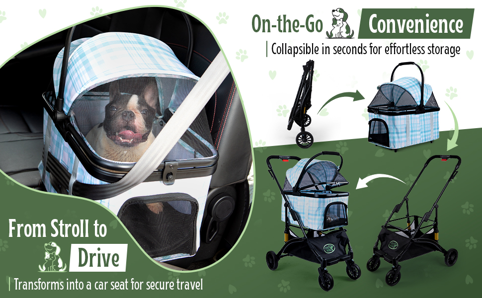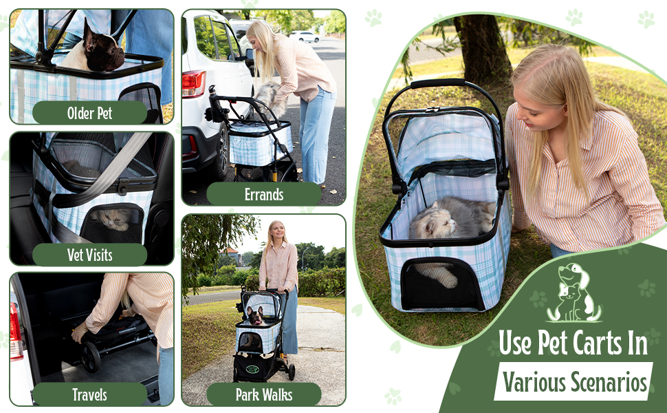 Fácil de usar: este cochecito ligero para mascotas es fácil de plegar y desplegar. La cesta de transporte se puede separar del cochecito con facilidad.