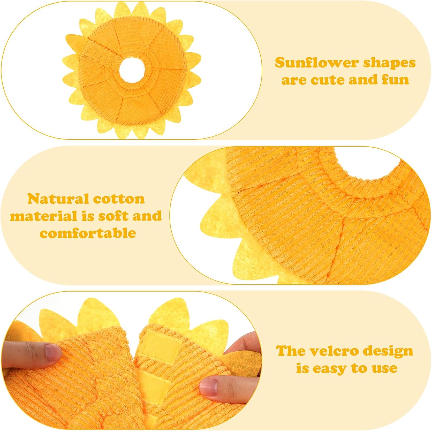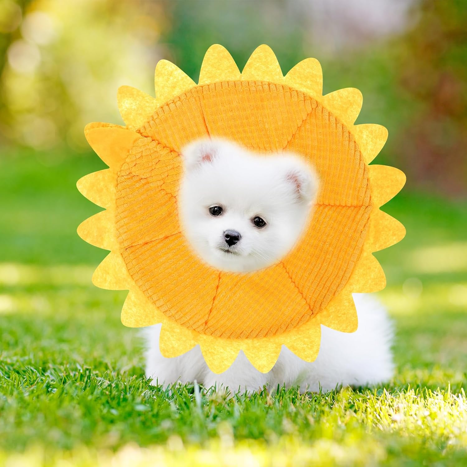 Diseño único de girasol, fácil de llevar y ajustar de acuerdo con el tamaño del cuello de la mascota