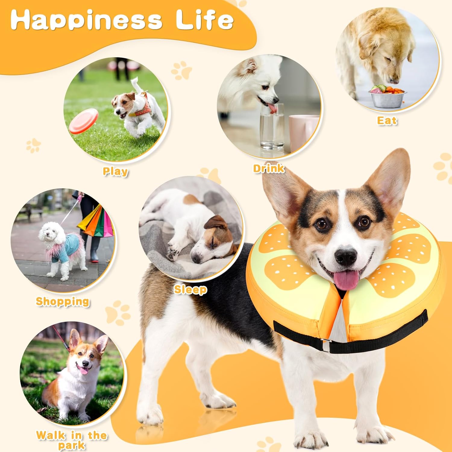 Ligero y cómodo: nuestro collar de dona para perro tiene una cubierta exterior agradable al tacto y velcro exterior ajustable para garantizar un ajuste cómodo, y la correa de hebilla interior incluida (excepto la talla S) se ata alrededor del cuello y no se desprenderá, abriendo la vista sin estrés. Una bolsa de aire interna de PVC proporciona una condición acolchada y cómoda para mantener a tu amigo peludo relajado y feliz.