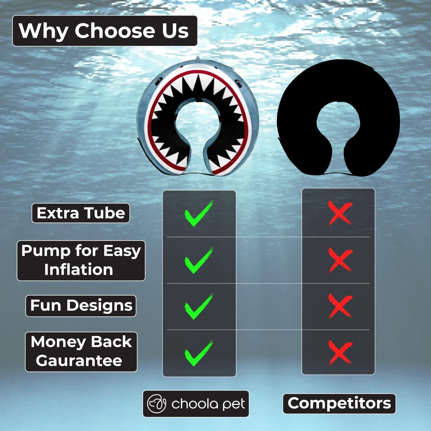 Dos artículos incluidos: incluimos una bomba de mano de doble acción que inflará el tubo interior rápidamente. ¿No quieres dolor en las mejillas? Bueno, queremos evitar eso para que puedas inflar rápidamente el tubo interior con la bomba incluida. Por último, sabemos que ocurren accidentes, por lo que incluimos un tubo interior adicional en caso de que su perro atraviese el tubo original. No anticipamos que esto suceda, ¡pero siempre queremos proporcionar una copia de seguridad!