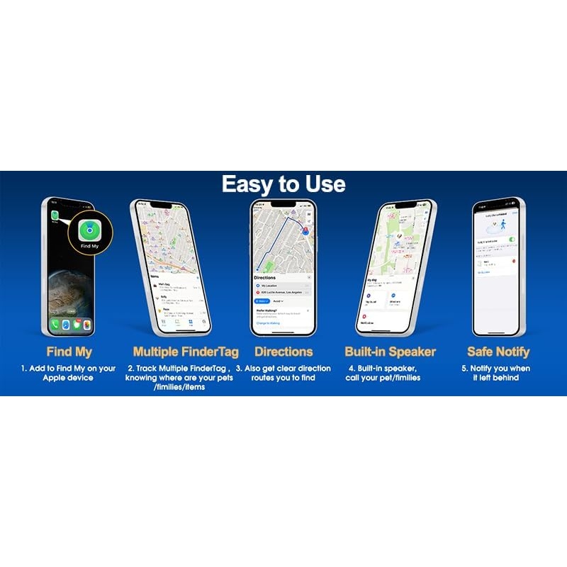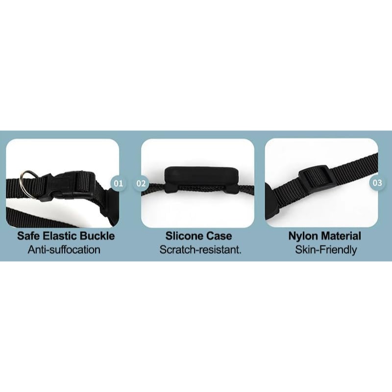 Seguimiento GPS: monitorea la ubicación y los niveles de actividad de tu mascota con el rastreador GPS incorporado y la aplicación complementaria. Fácil de configurar: una sencilla configuración de un solo toque conecta instantáneamente el buscador de rastreador de collar de rastreo de mascotas a la aplicación Buscar mi en tus dispositivos Apple para seguirlo en tiempo real en tu teléfono. Ligero y resistente al agua: está hecho de nailon de alta calidad, silicona y ABS. Es sólido, resistente y resistente al agua. Tamaño ajustable: es fácil obtener un ajuste perfecto alrededor del cuello de la mascota. Es adecuado para perros y gatos pequeños, medianos y grandes. Batería de larga duración: funciona con una batería de botón CR2032 que tiene un tiempo de espera súper largo de más de 12 meses y se puede reemplazar fácilmente para un uso a largo plazo