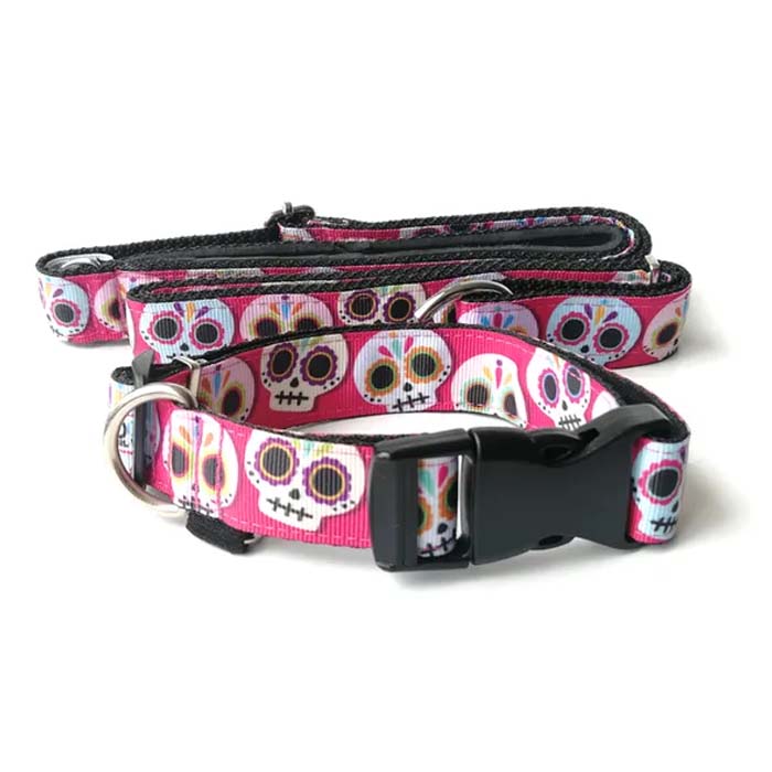 Collar y correa Catrinas Rosadas perros medianos Soko