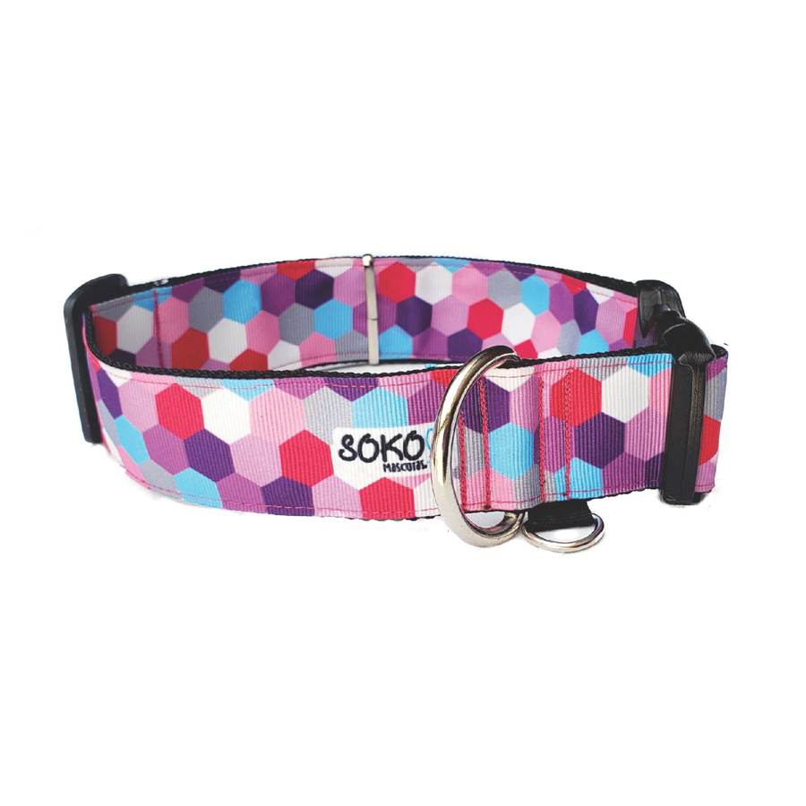 Collar y Correa Hexágonos fucsias para perros Medianos Soko