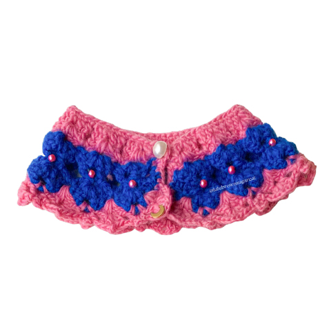 Collarines tejidos a mano. Material: Lana, dije de acero y cuentas variadas. Medida: 24cm-26cm