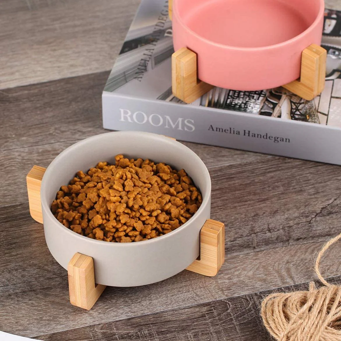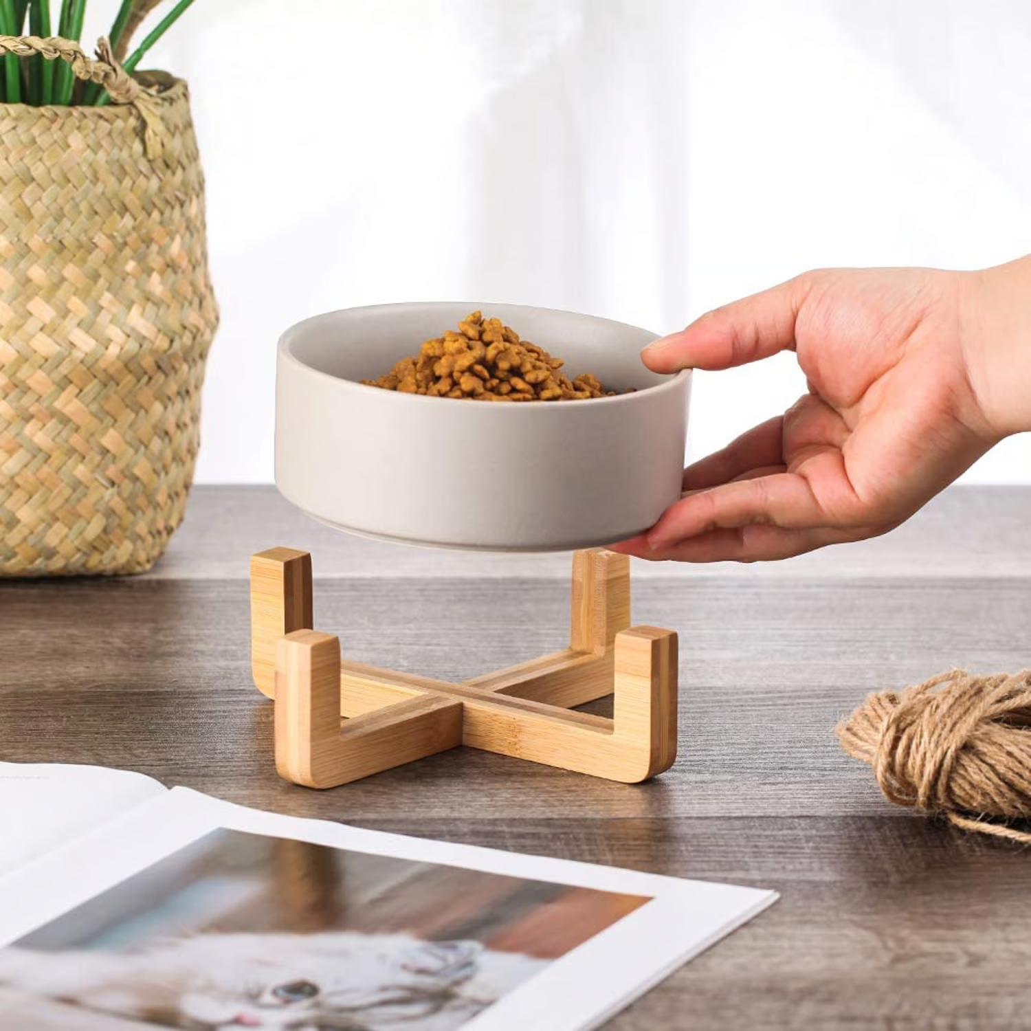 Comedero para gatos con soporte de bambú! Ahora podrás ofrecer a tus mascotas comida y agua de una manera elegante y cómoda. Estos platos son perfectos tanto para alimentos húmedos como secos, golosinas e incluso agua.