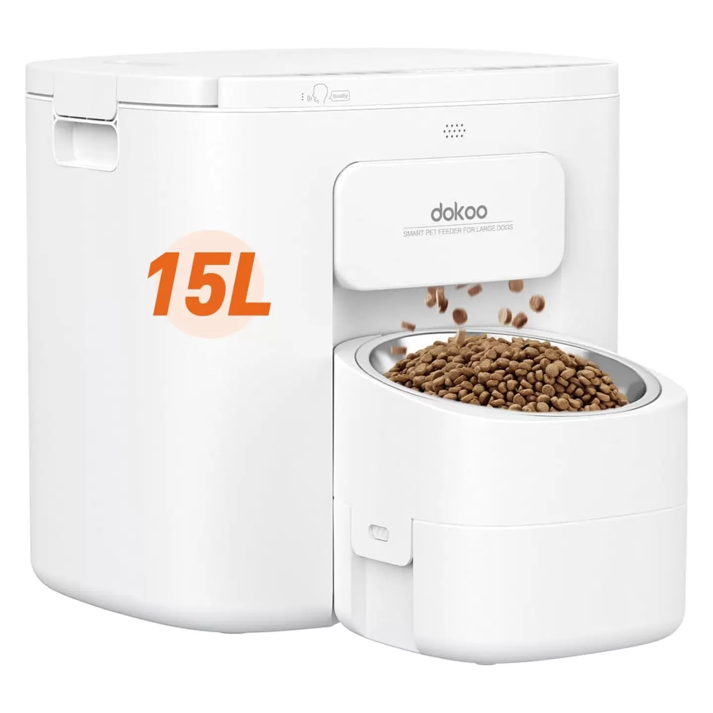 Capacidad de 7 kilos para razas grandes Con un depósito de 15 litros (equivalente a 7 kg de alimento seco aproximadamente), este dispensador puede alimentar a un perro grande por hasta 15 días seguidos. Es la solución perfecta para quienes viajan por trabajo o salen de vacaciones, brindando la tranquilidad de que su mascota estará bien alimentada.