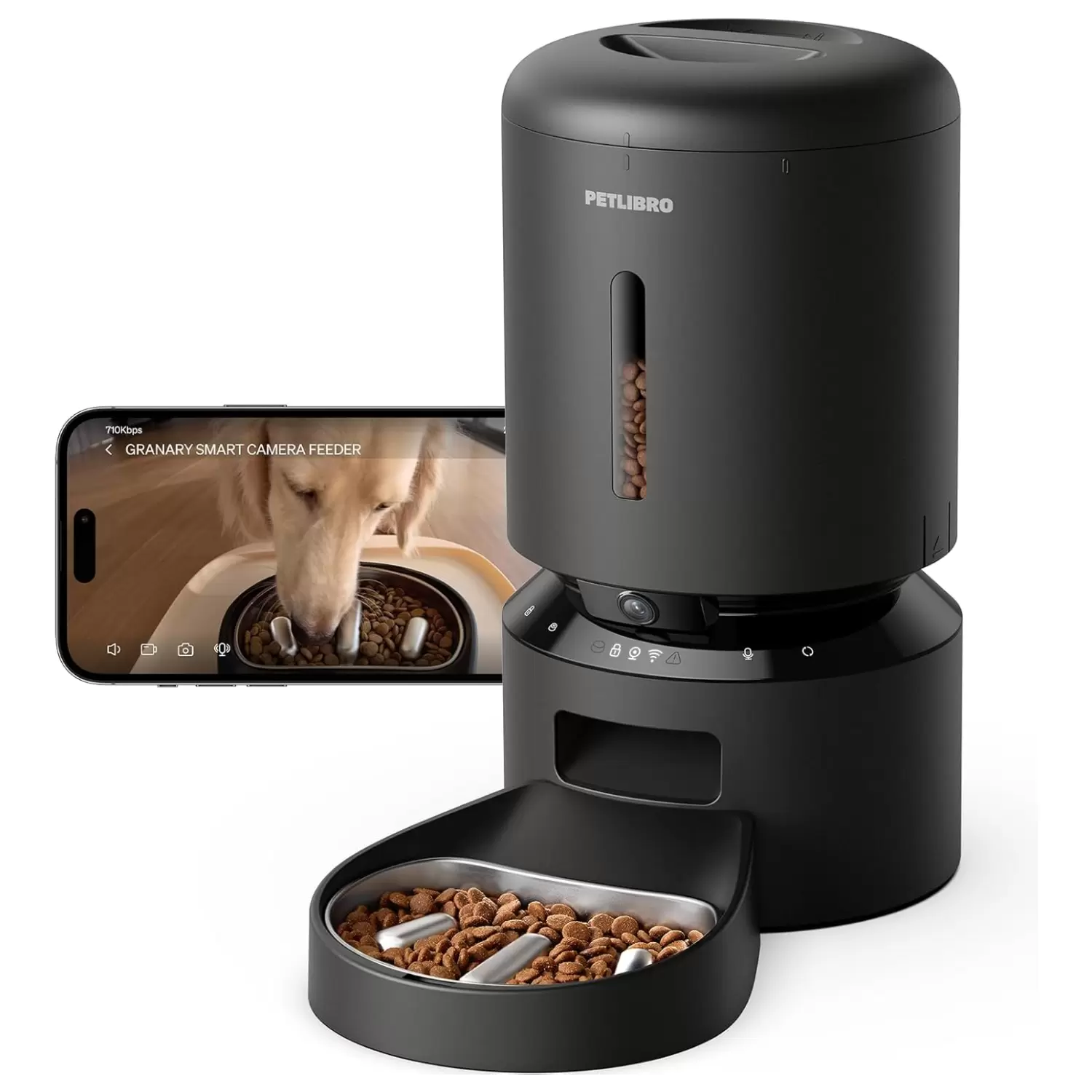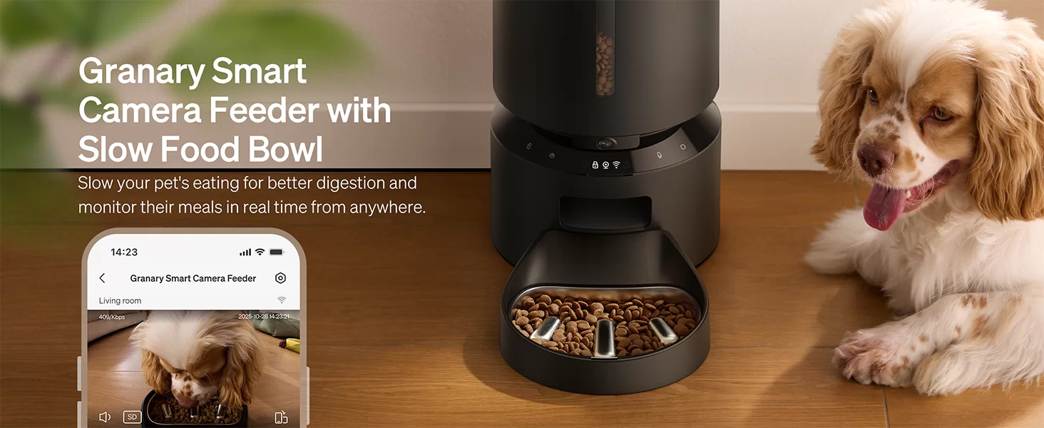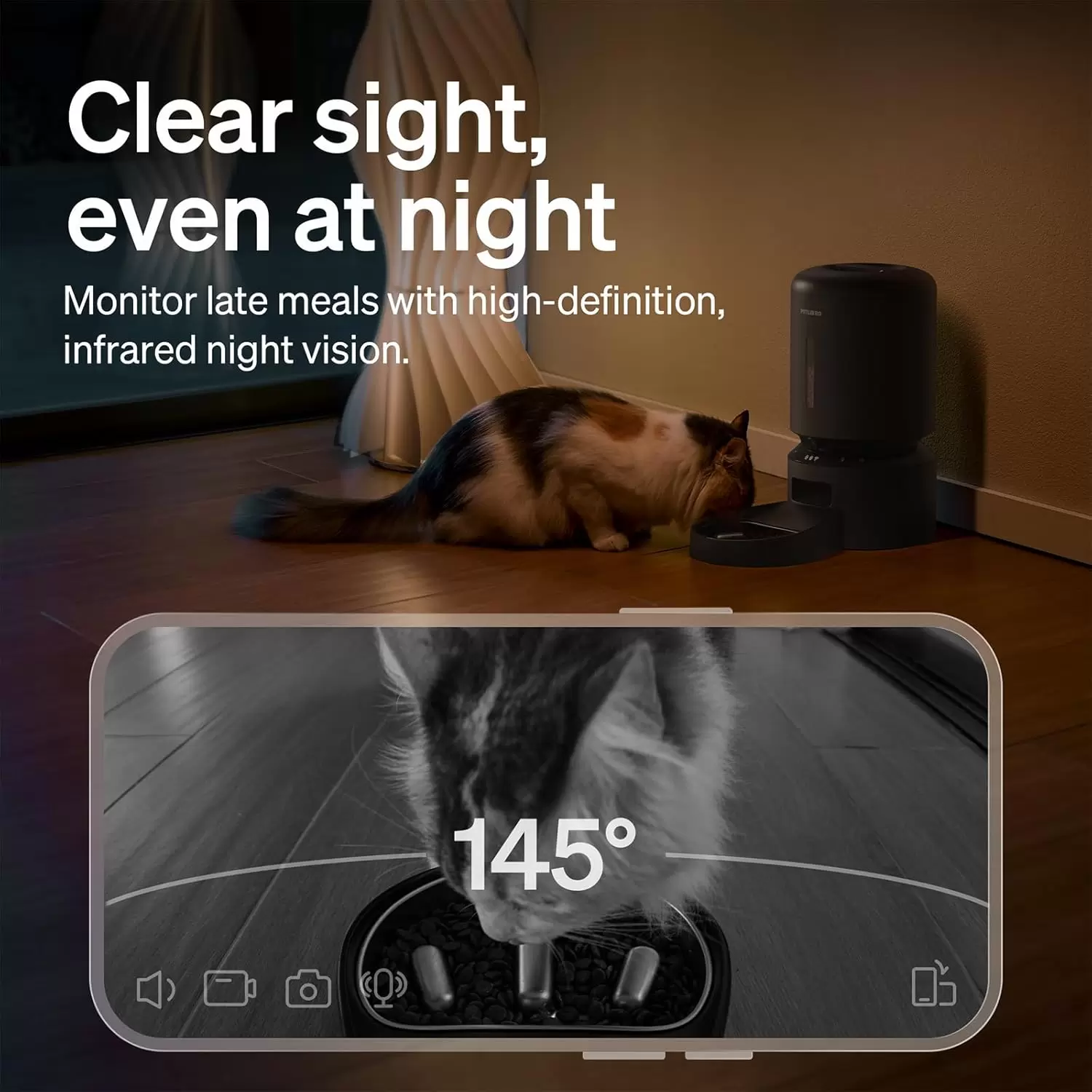 Comedero de 2 kg con camara HD y WiFi dual. Incluye plato de alimentacion lenta para mejorar la digestion, audio bidireccional y control por app ideal para gatos y perros pequeños.