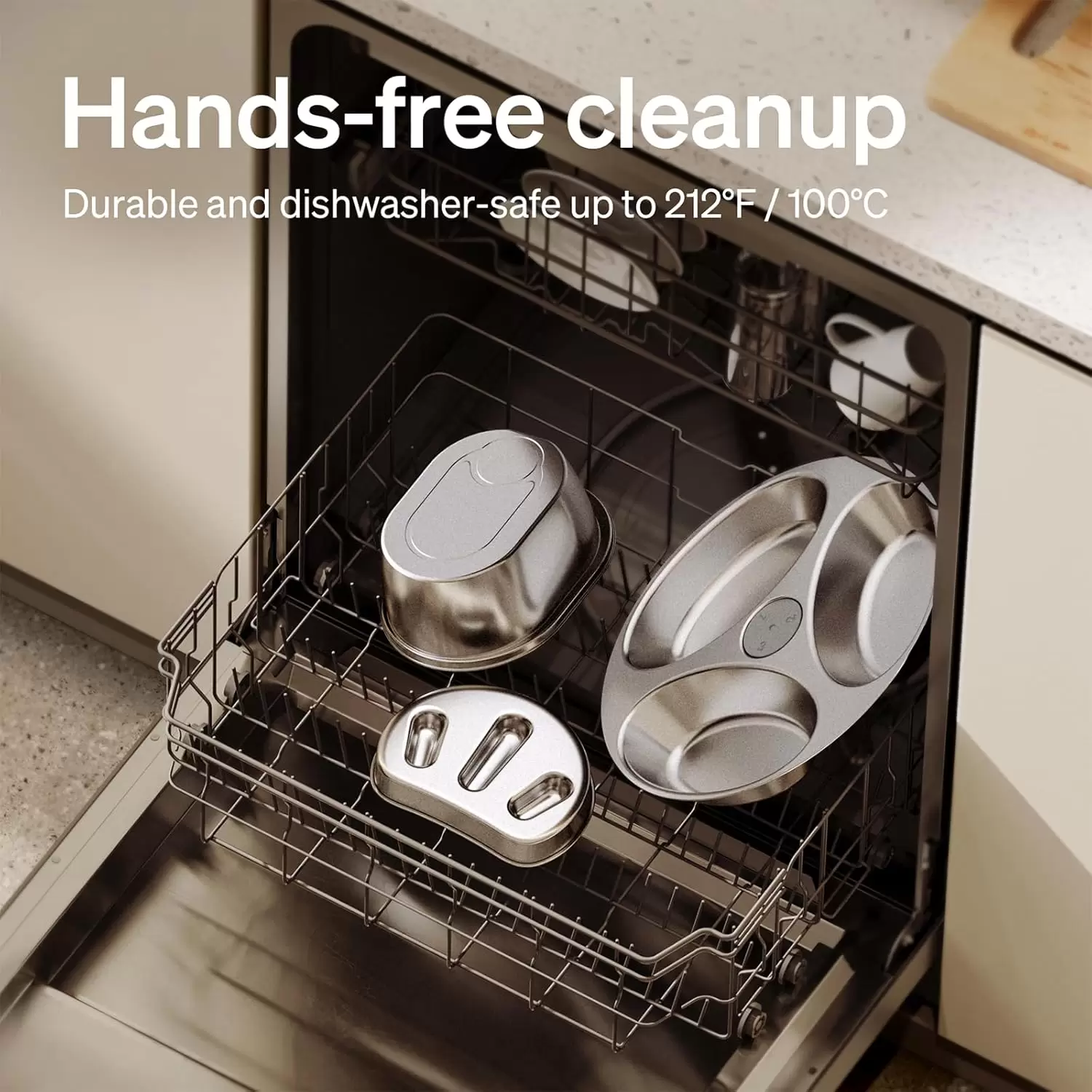 Máxima higiene y frescura garantizada El tanque de 2 kg cuenta con un cierre hermético y un compartimento para desecante que mantiene las croquetas crujientes y frescas por más tiempo. El plato de acero inoxidable es resistente al óxido, previene el acné felino y es apto para lavavajillas, facilitando la limpieza y manteniendo la zona de alimentación impecable.